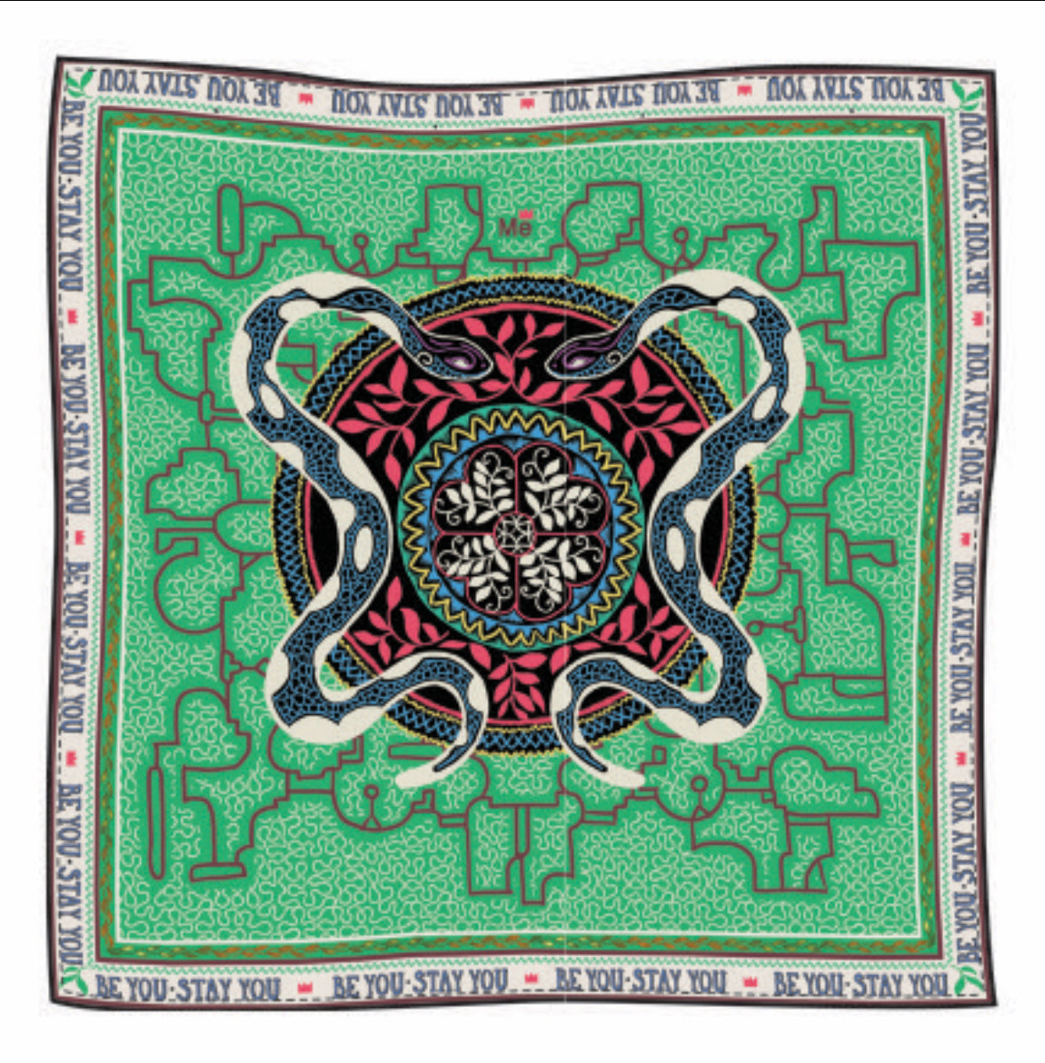 Essentiel Antwerp INC Light blue, red and green silk snake sprint square scarf
