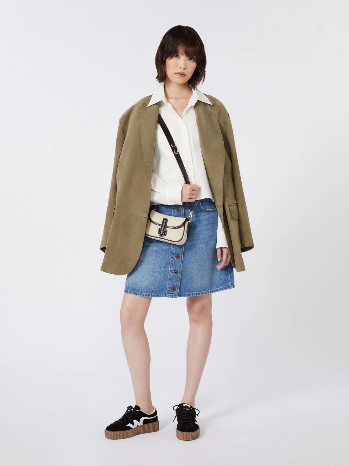 Max Mara Weekend WKAVIK Canvas and leather micro crossbody bag - BEIGE