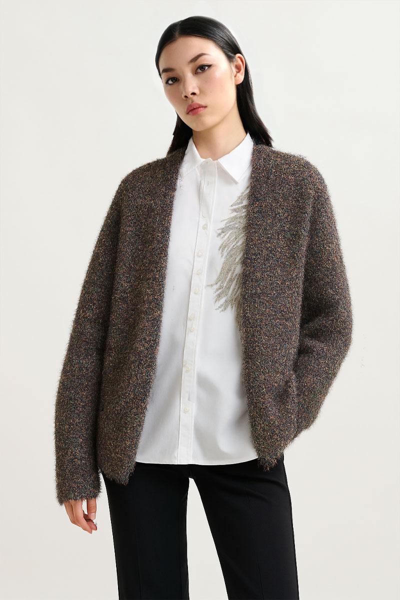 Essentiel Antwerp ILEAST Furry Knit Cardigan Silver Lining