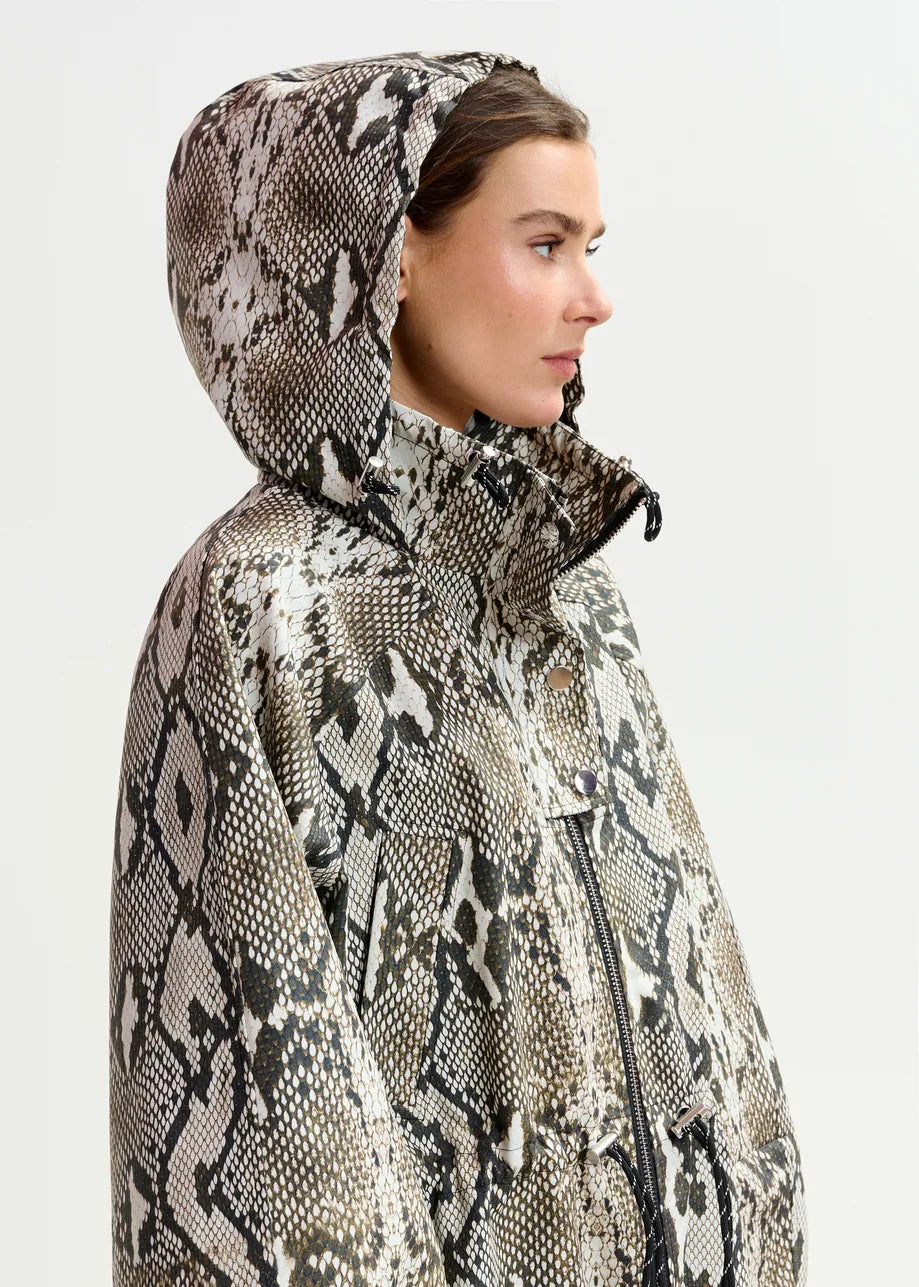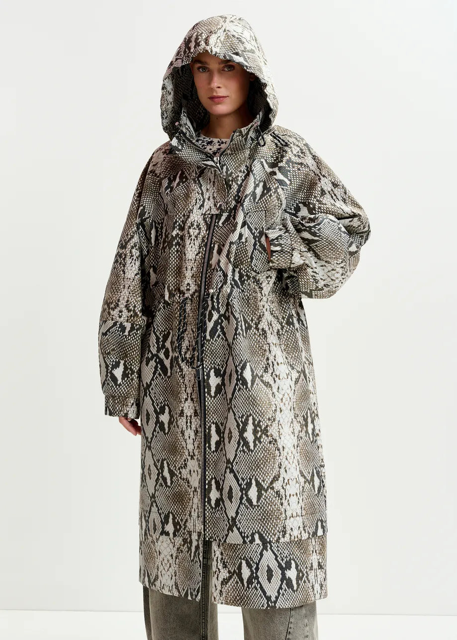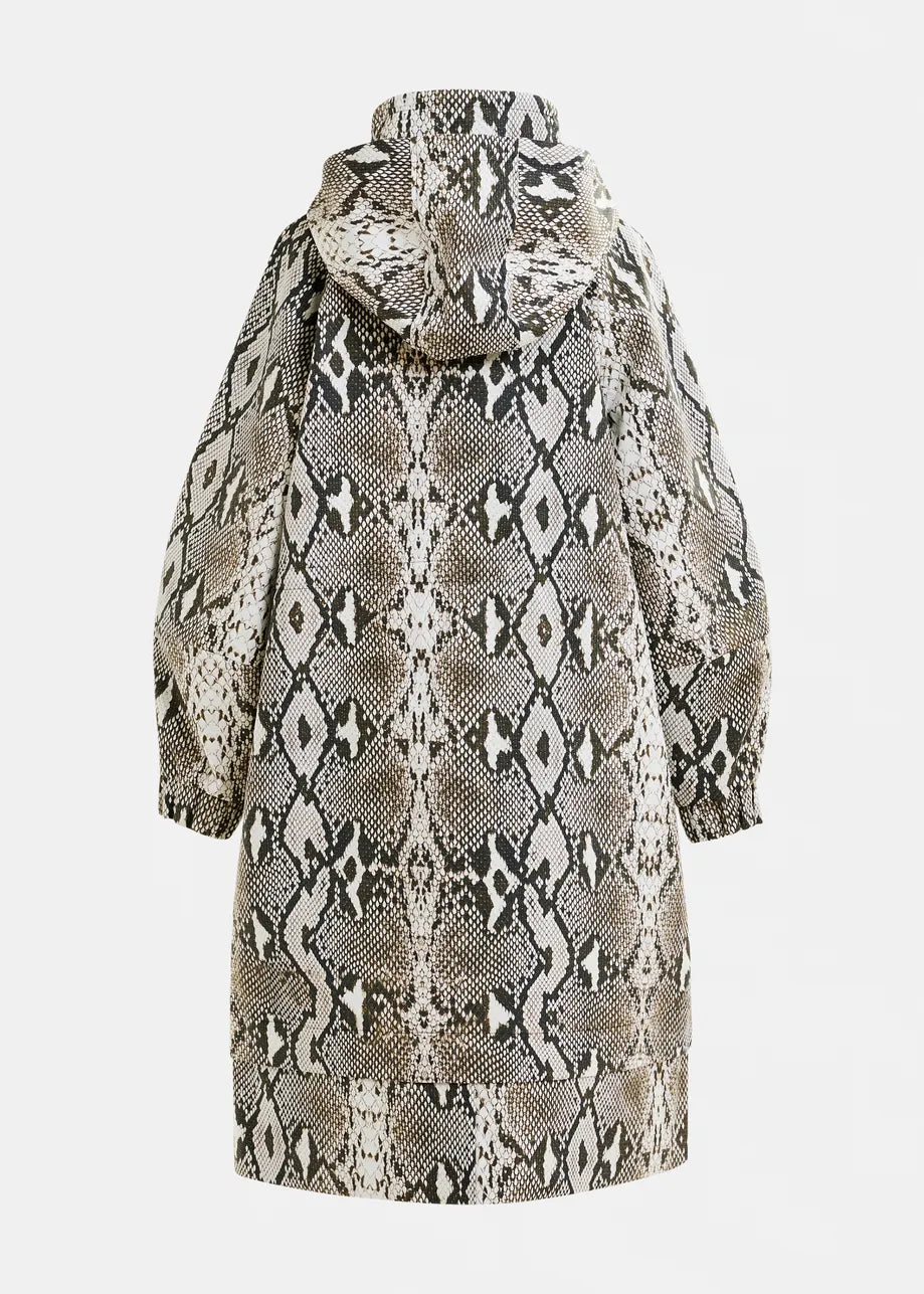 Essentiel Antwerp IDENTIFY Snakeprint Green, beige and black oversized hooded raincoat
