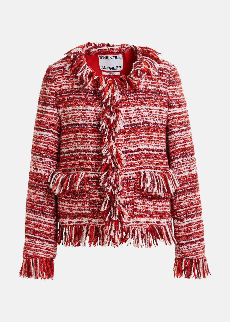 Essentiel Antwerp ISKRA Burgundy, red and white fringed wool-blend bouclé jacket