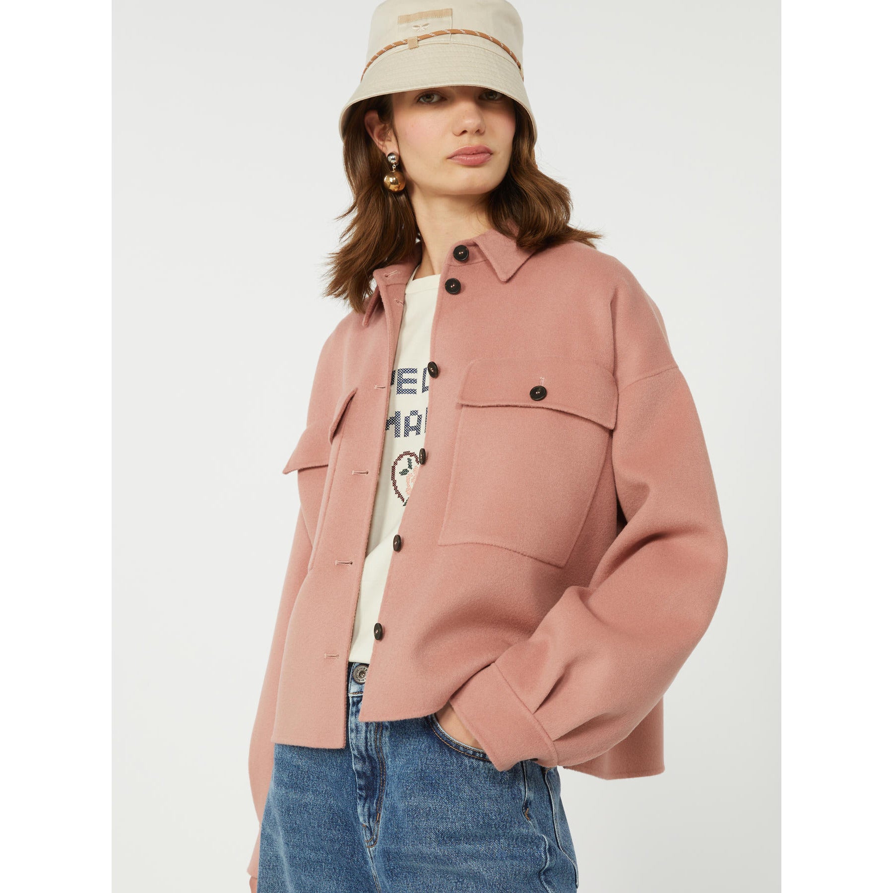 Max Mara Weekend WKDZERBINO Cropped wool shirt jacket Antique Rose