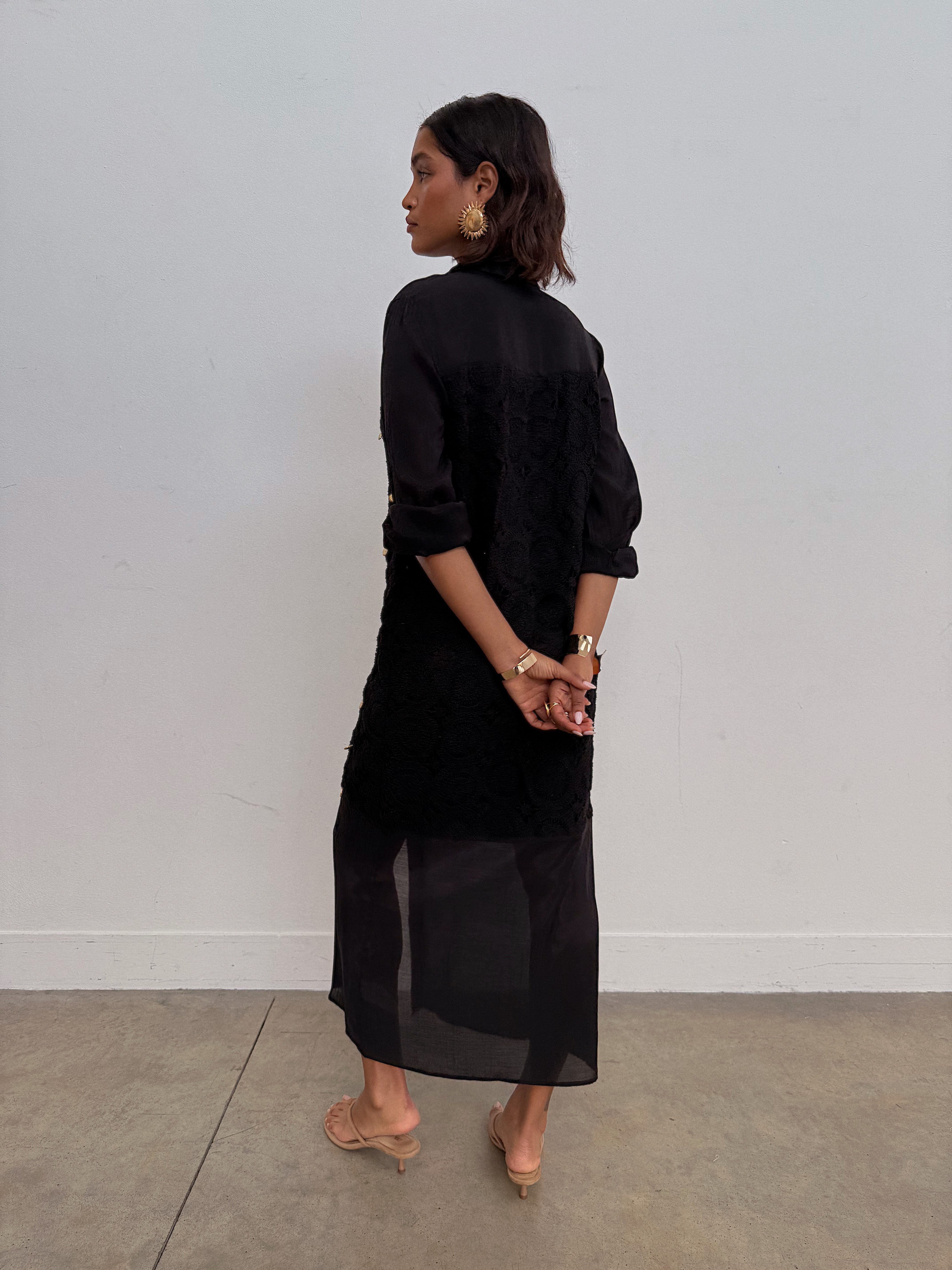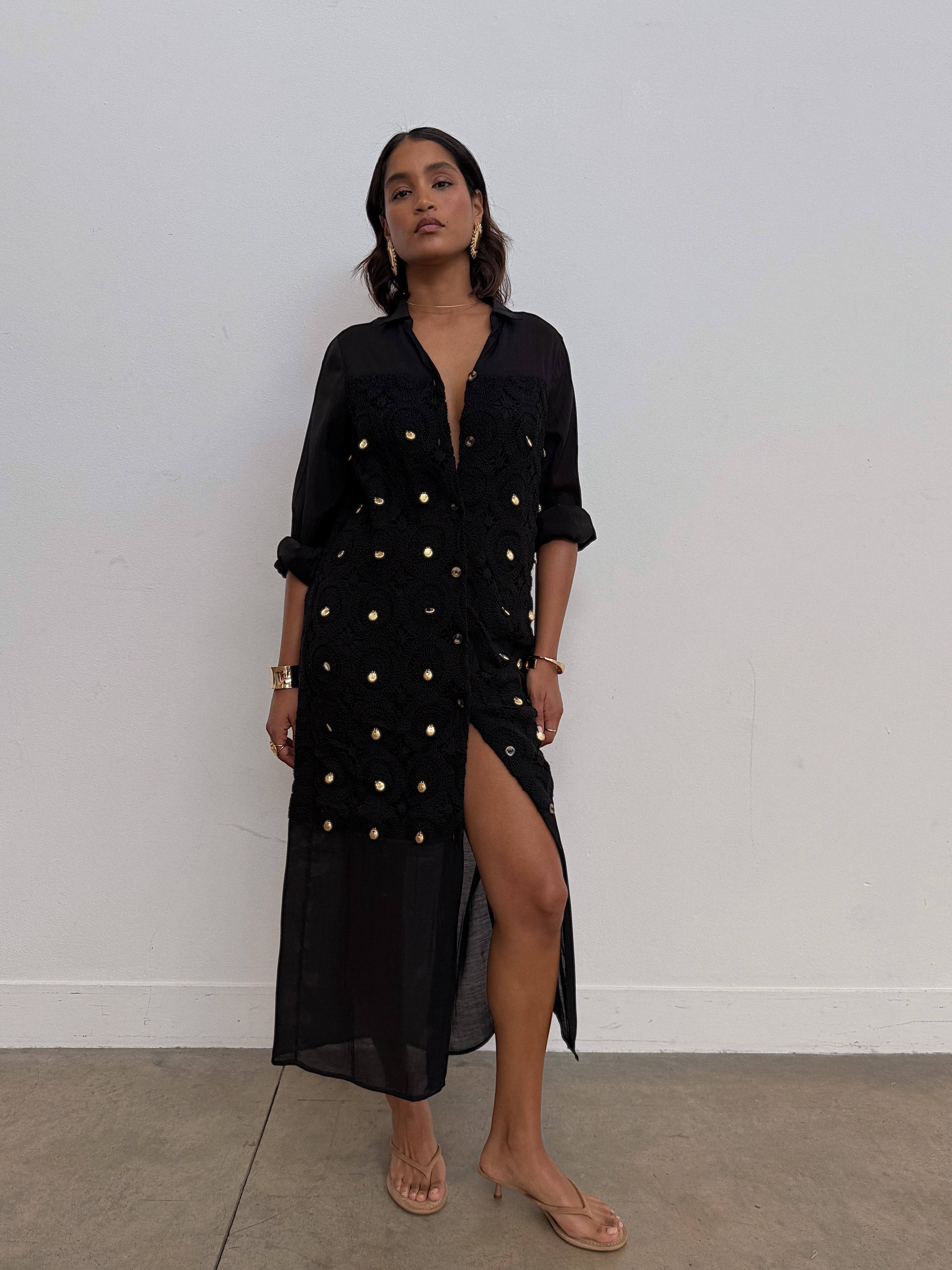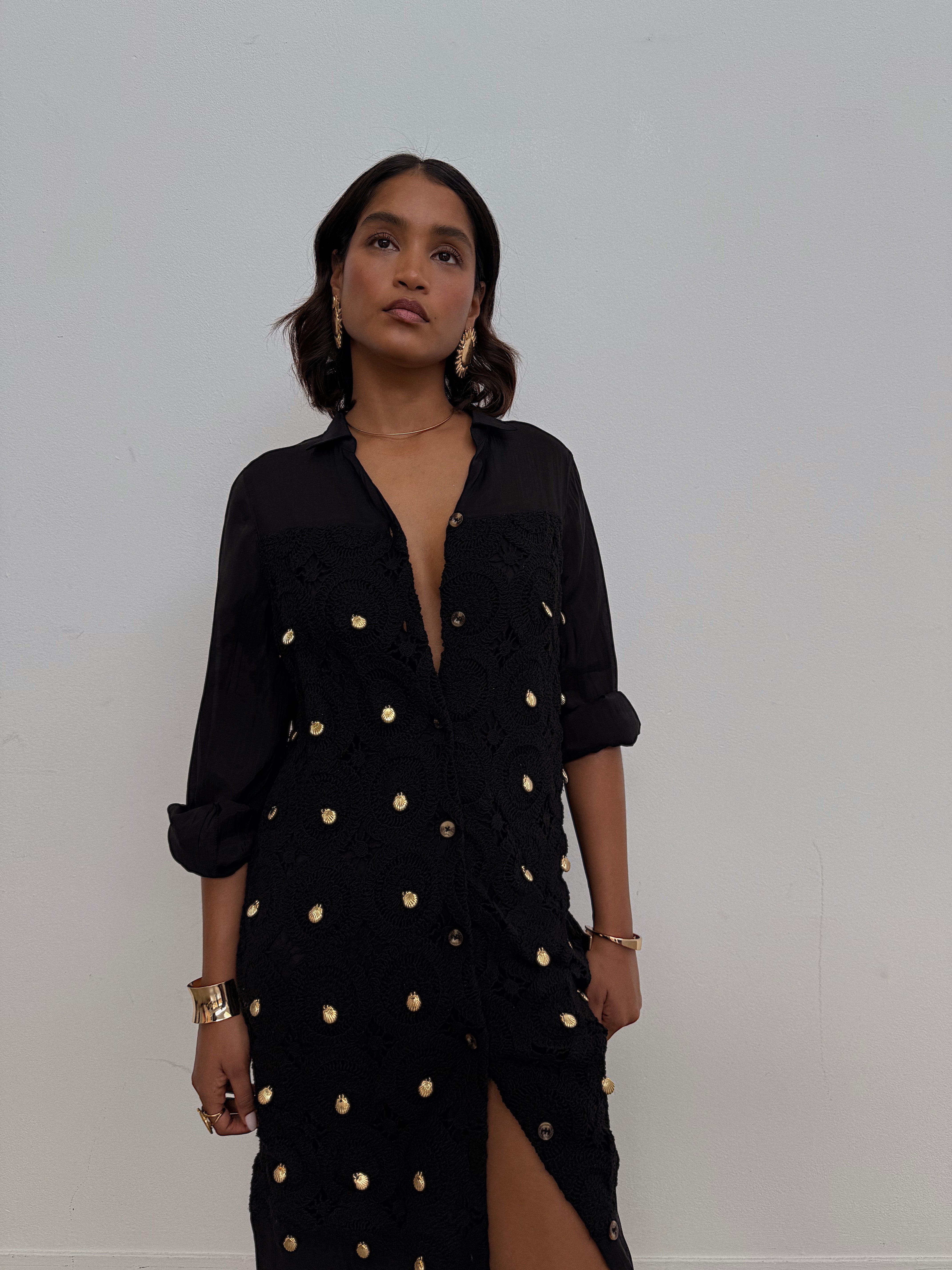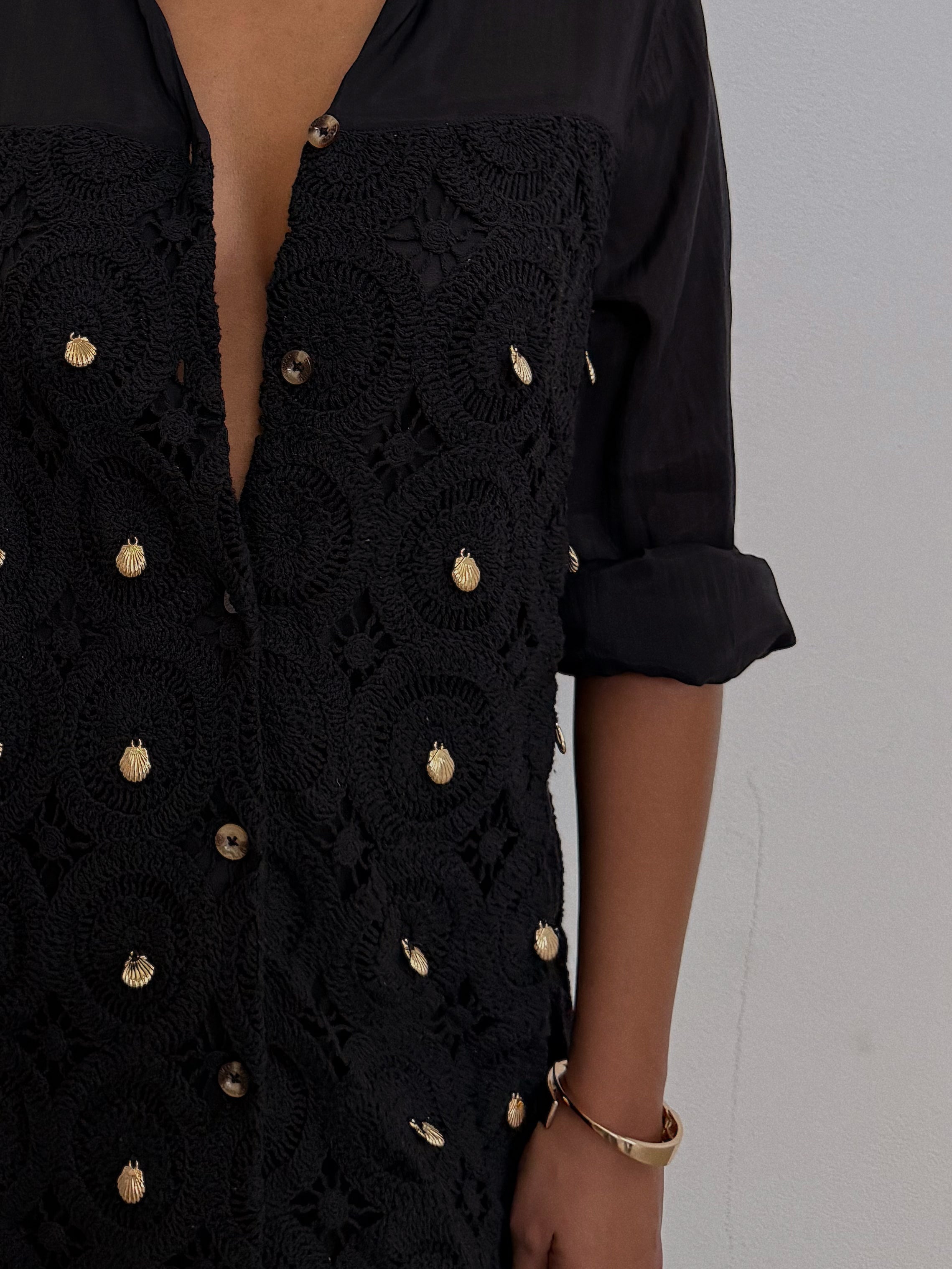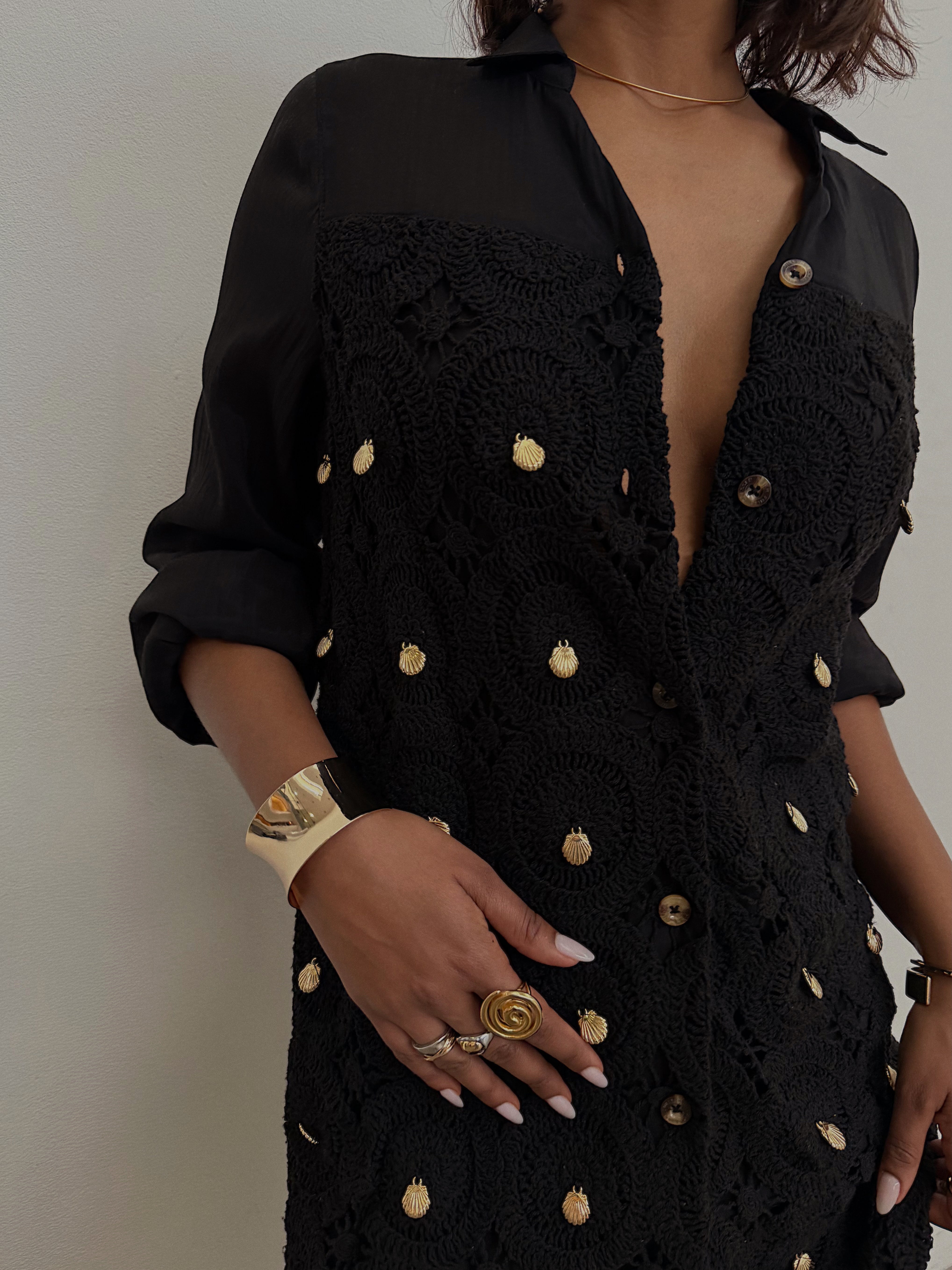 Never Fully Black Dressed Black Crochet Shell Long Miley