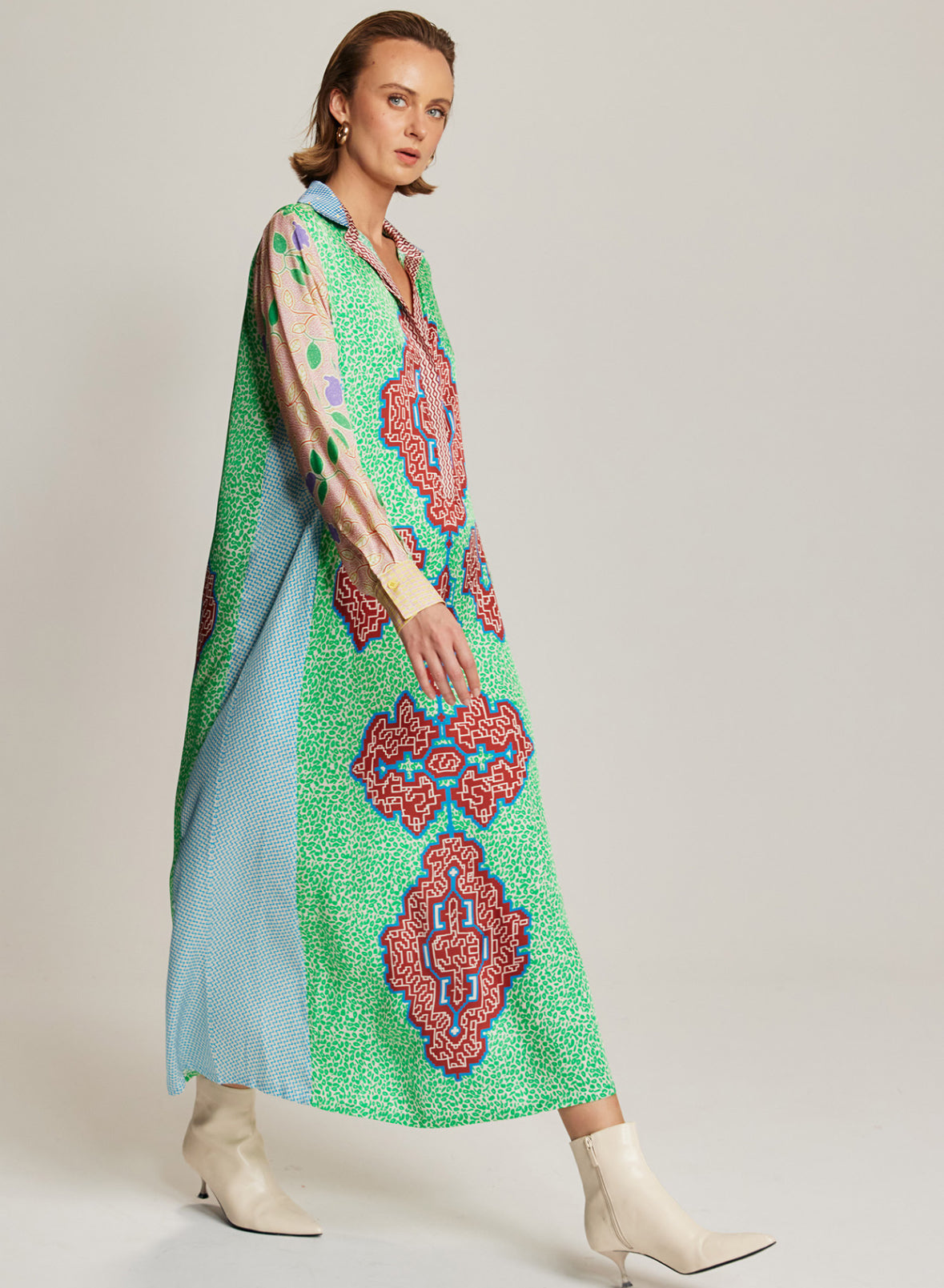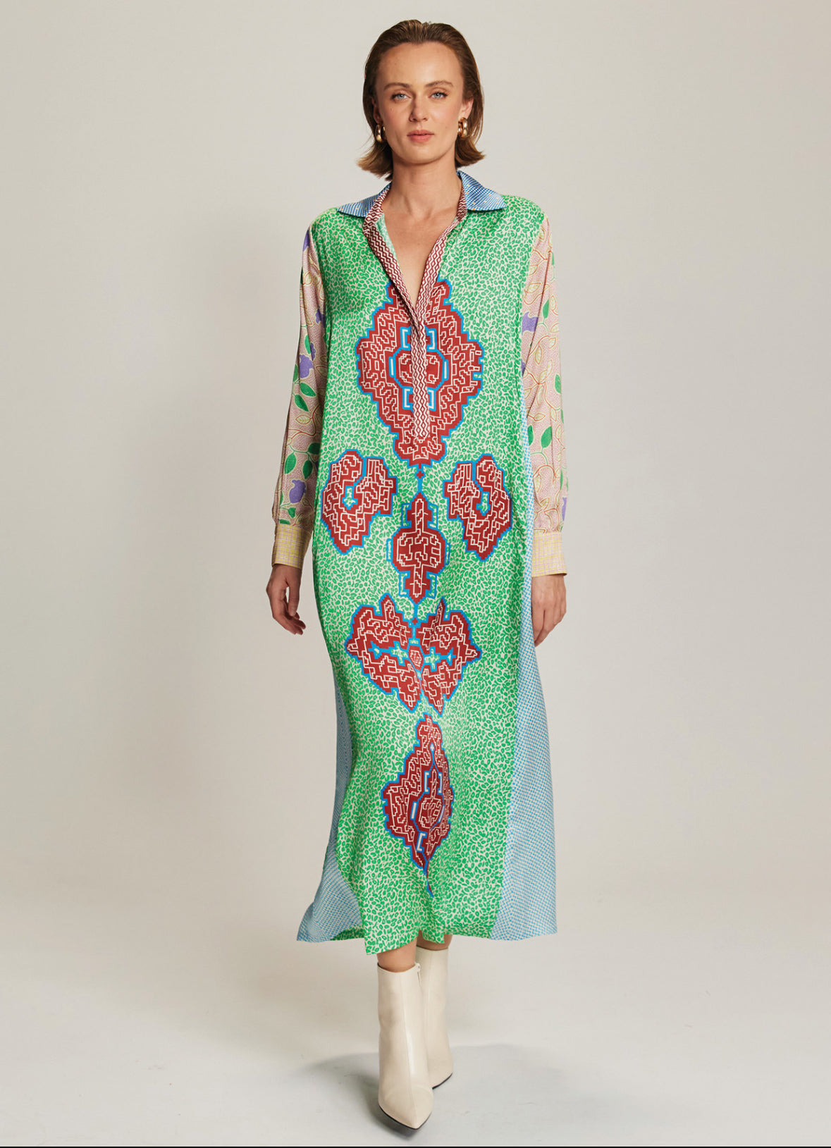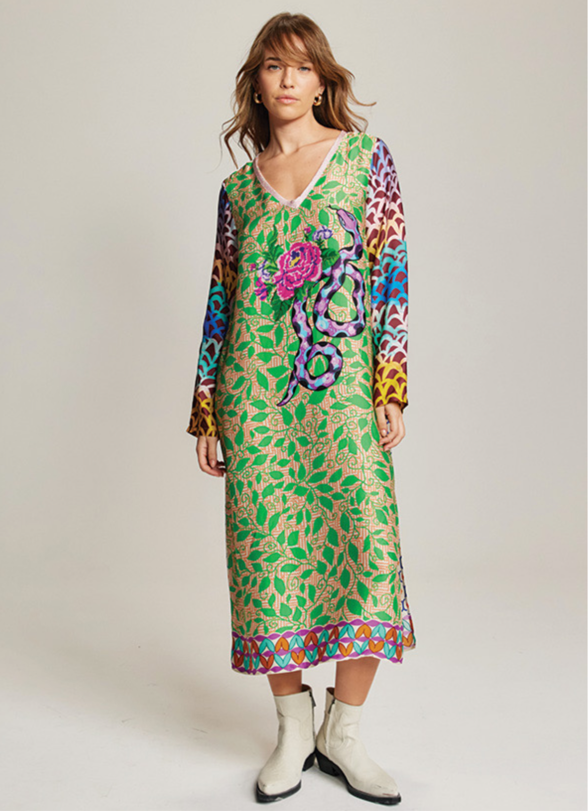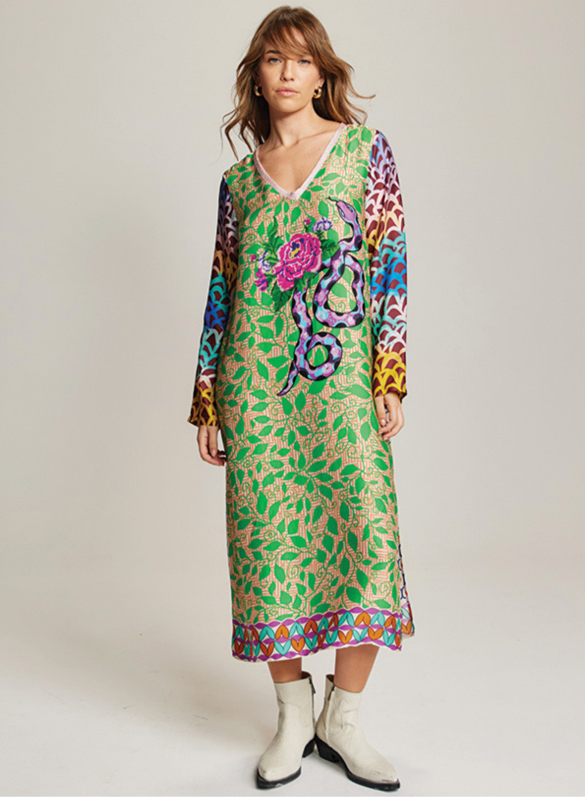 Max Mara Weekend Green Floral GIUDY Long Printed Silk Dress
