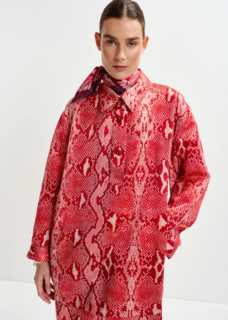 Essentiel Antwerp ILLUMINATA Red and orange snakeprint minidress