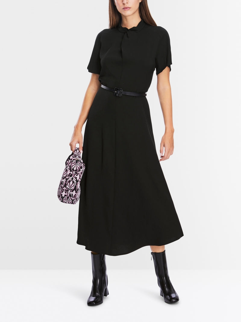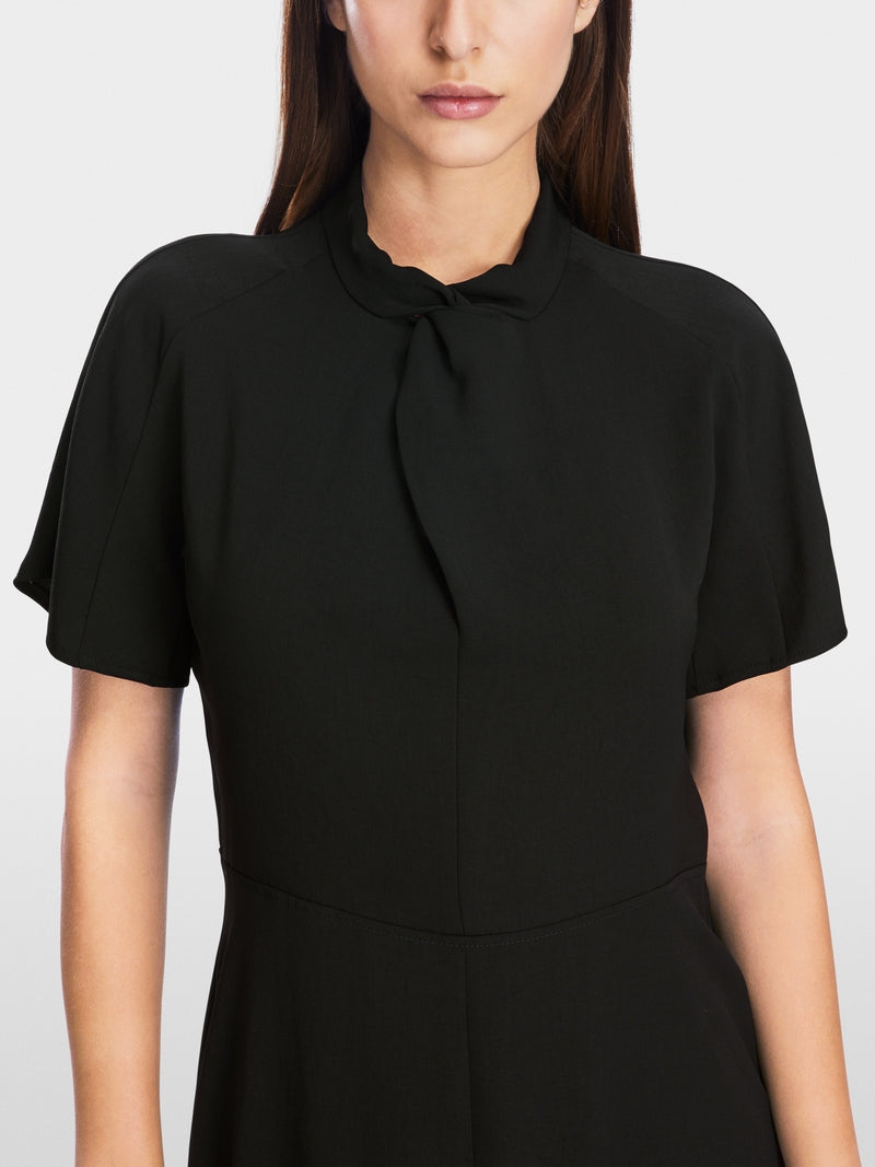 This dress has a feminine cut with raglan sleeves and a flared skirt. It has a puff collar. The dress fastens at the back with a concealed zip. Dividing seams add a sporty touch. The dress also impresses with its soft material.