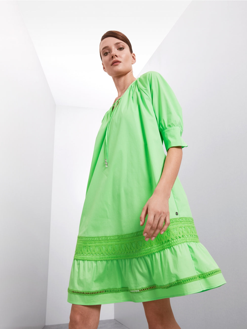 Marc Cain Light Apple Green Romantic raglan dress with tier