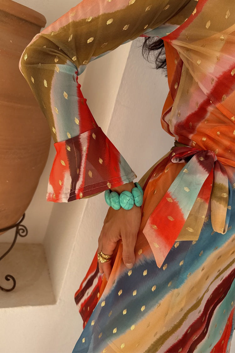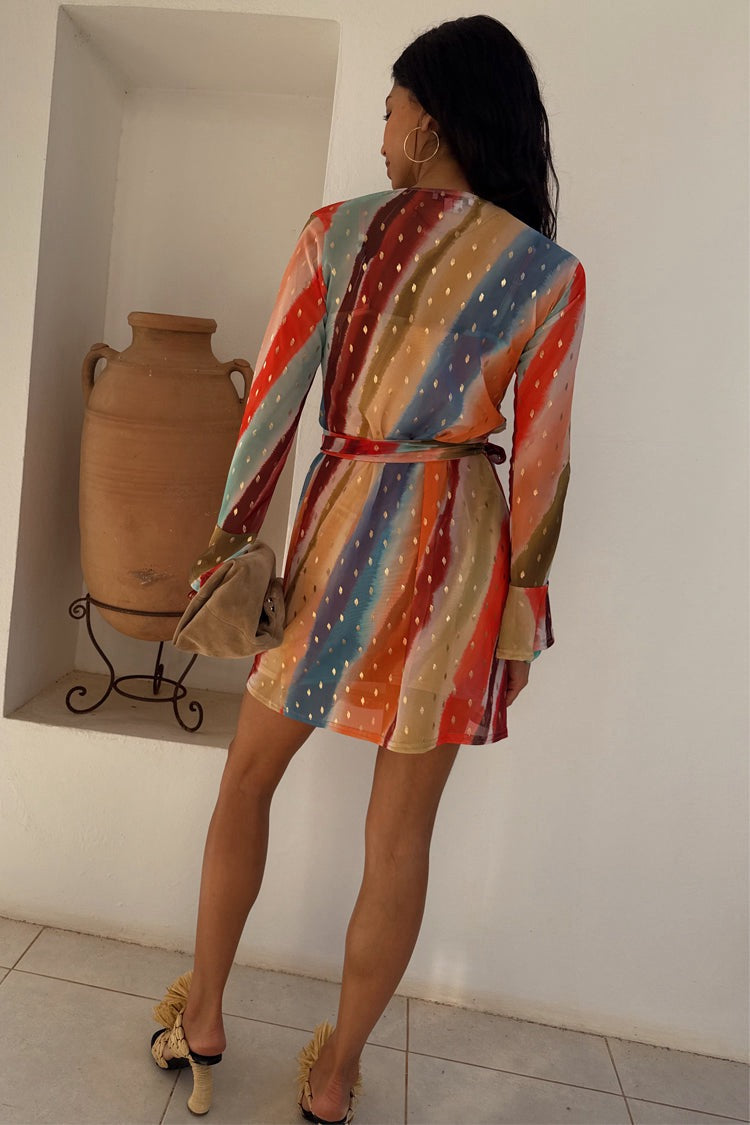 The perfect edition to your summer wardrobe in our best-selling silhouette. An effortless piece that requires minimal styling. Our wrap tie fastening allows you to adjust the coverage for easy comfortability. The stunning multi-coloured print makes it the perfect day to night wear.