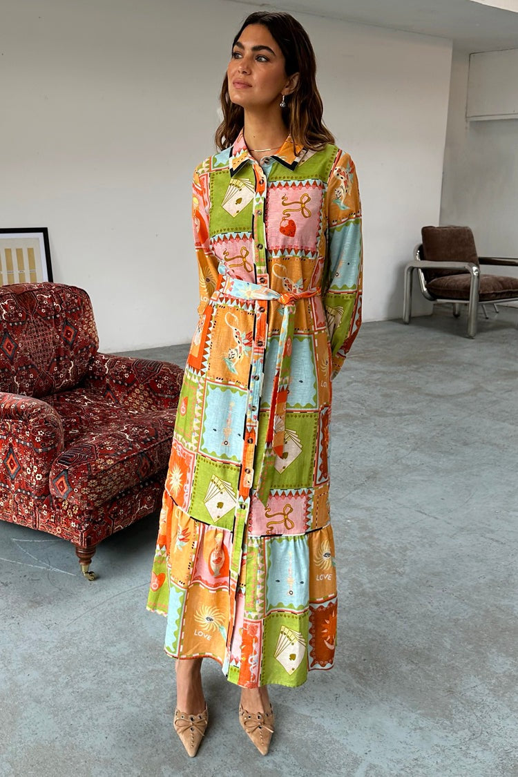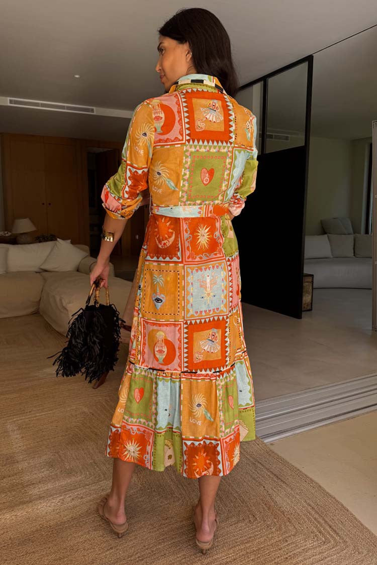 Max Mara Weekend Gaia Yellow Printed silk shirt dress