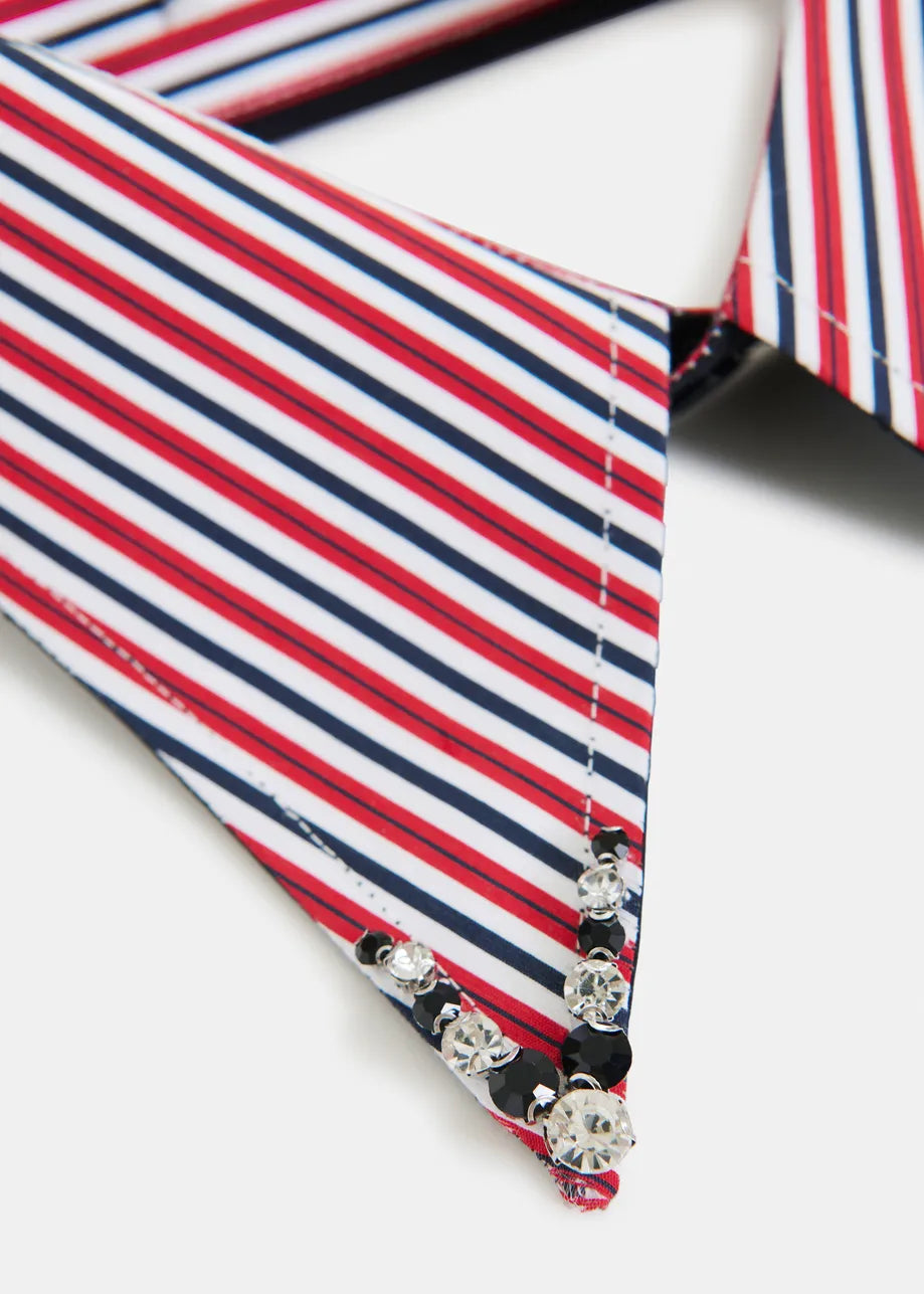 Essentiel Antwerp IPLAIN Red, blue and white striped cotton collar with rhinestone embellishments