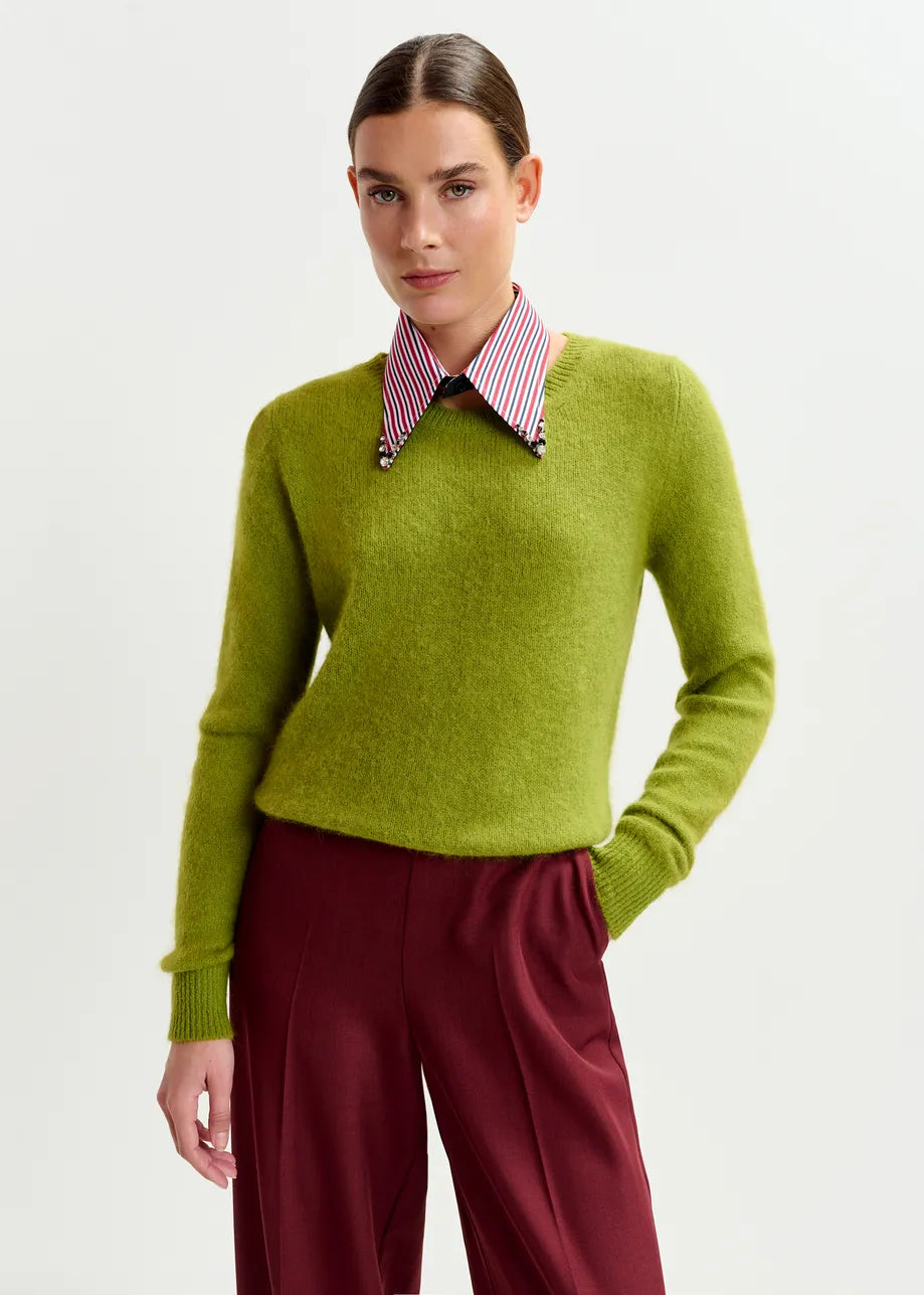 Elevate any outfit with this detachable striped collar, crafted from 100% cotton. The classic pointed design features glass rhinestones at the tips for a subtle sparkle, while a single button fastening ensures a secure, polished fit. Perfect for layering over sweaters, dresses, or tees, this versatile accessory adds a refined edge with a playful twist.