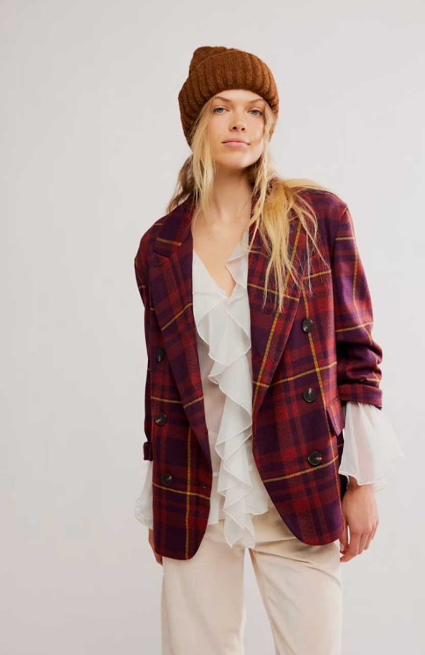Free People Dean Double-Breasted Blazer Plum Combo
