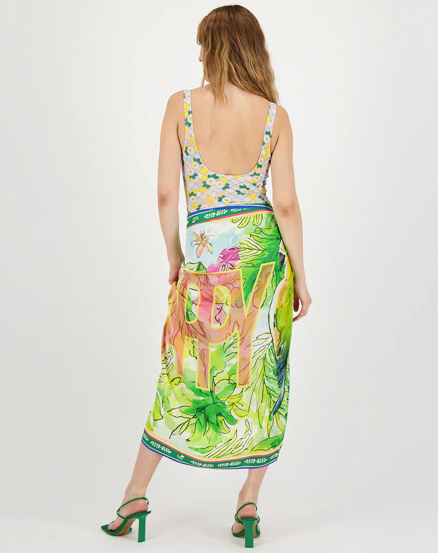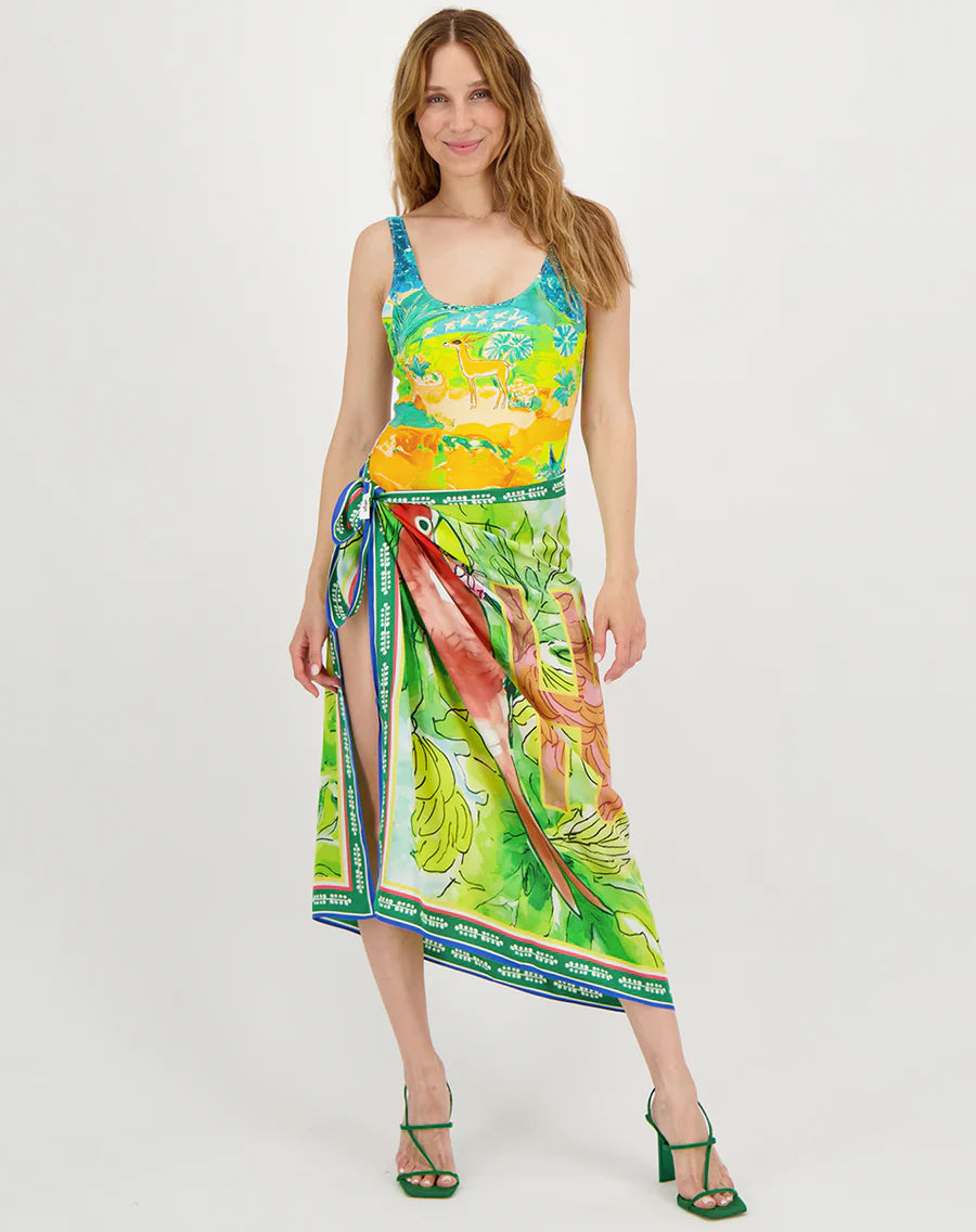 Essentiel Antwerp INC Light blue, red and green silk snake sprint square scarf