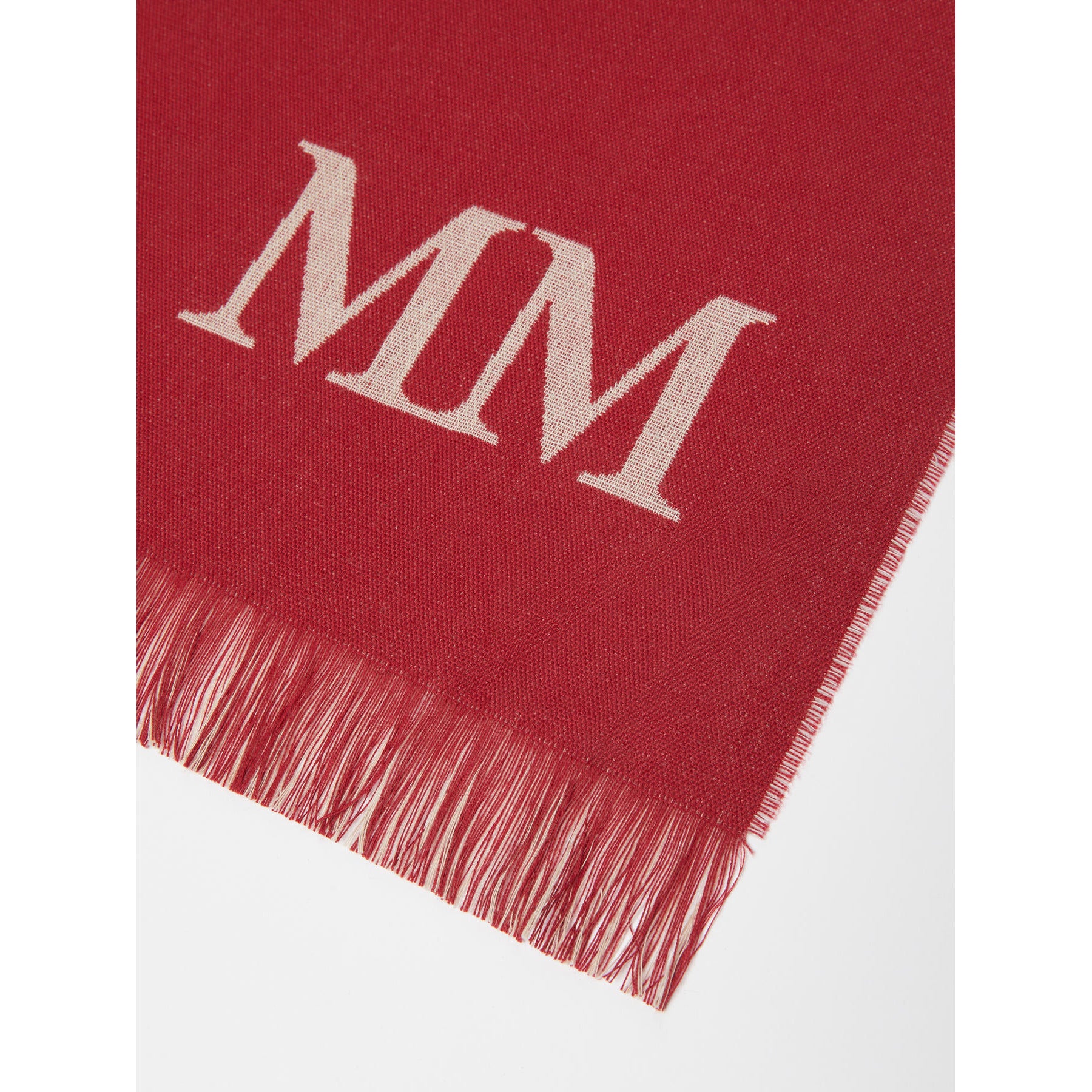 Long stole customised with jacquard MM logo detail.
