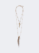 Double-wrap asymmetric chain necklace with "Abissi" pendants and geometric rhinestone details.