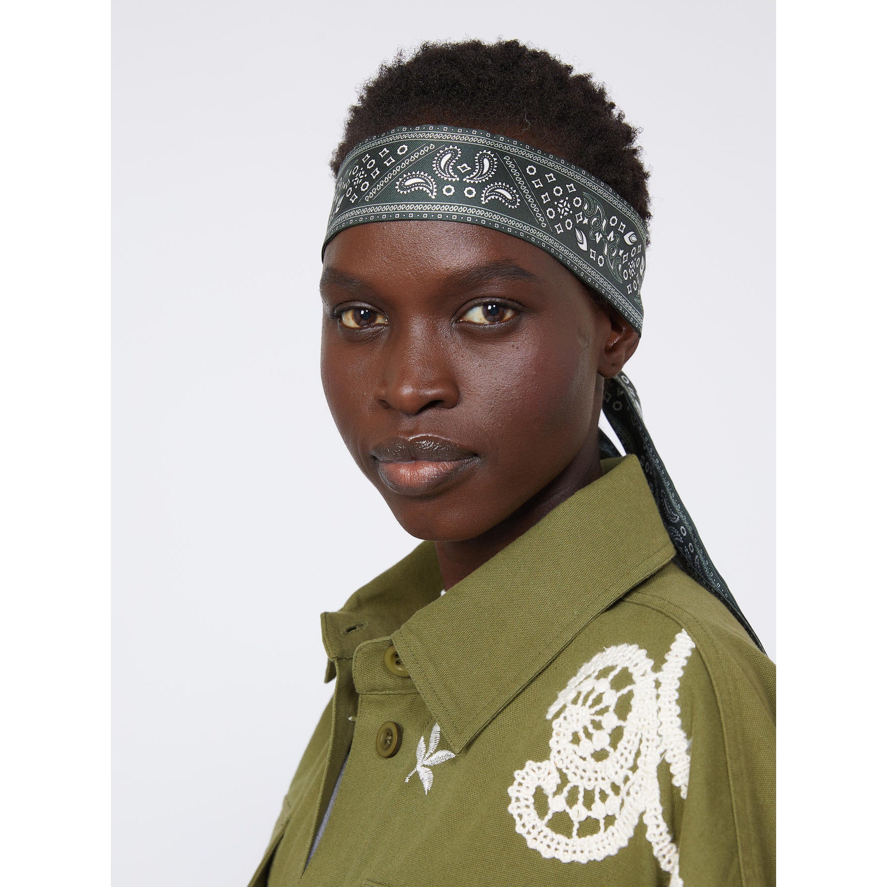 Max Mara Weekend FAIDA Silk Neck Scarf Green Bandana Print
