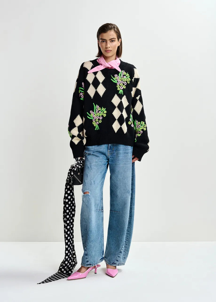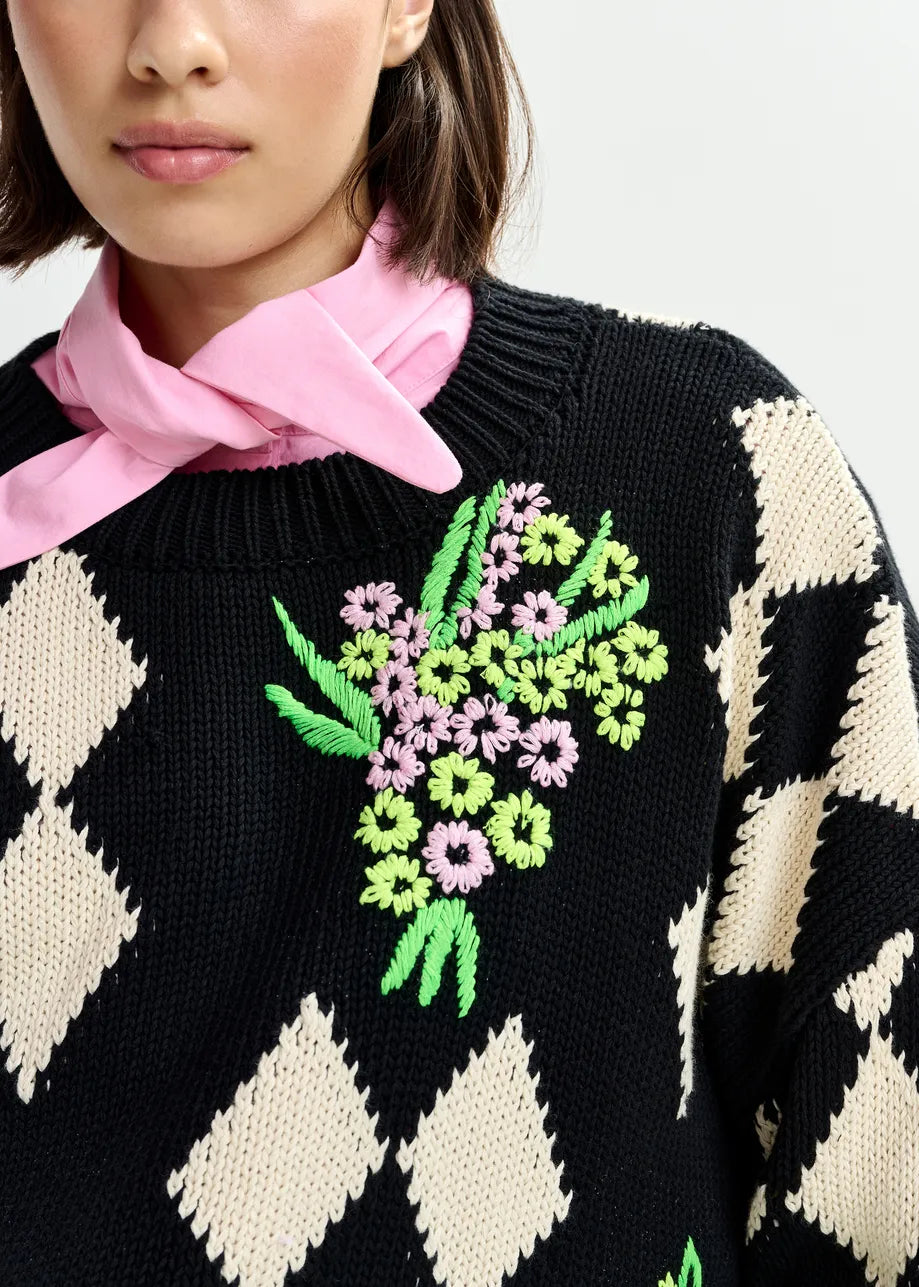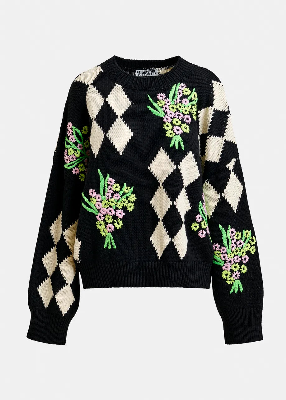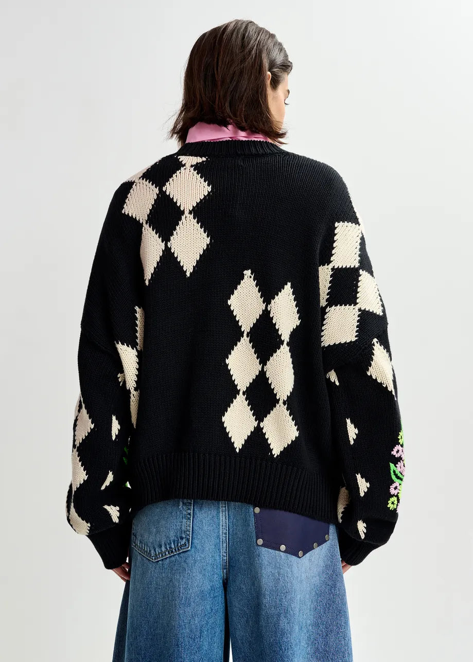 Essentiel Antwerp JACTORI Black and off-white oversized jacquard knit sweater