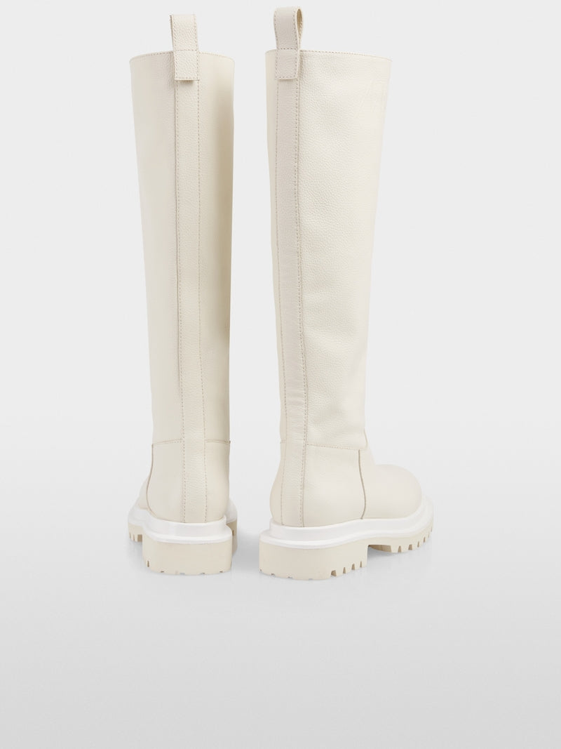 Leather boots with a high shaft and chunky treaded sole. These boots are made from grained calfskin and have a close-fitting cut. A short zip on the inside makes them easy to put on and take off. Tone-on-tone: the shiny logo print on the upper edge of the shaft.