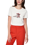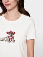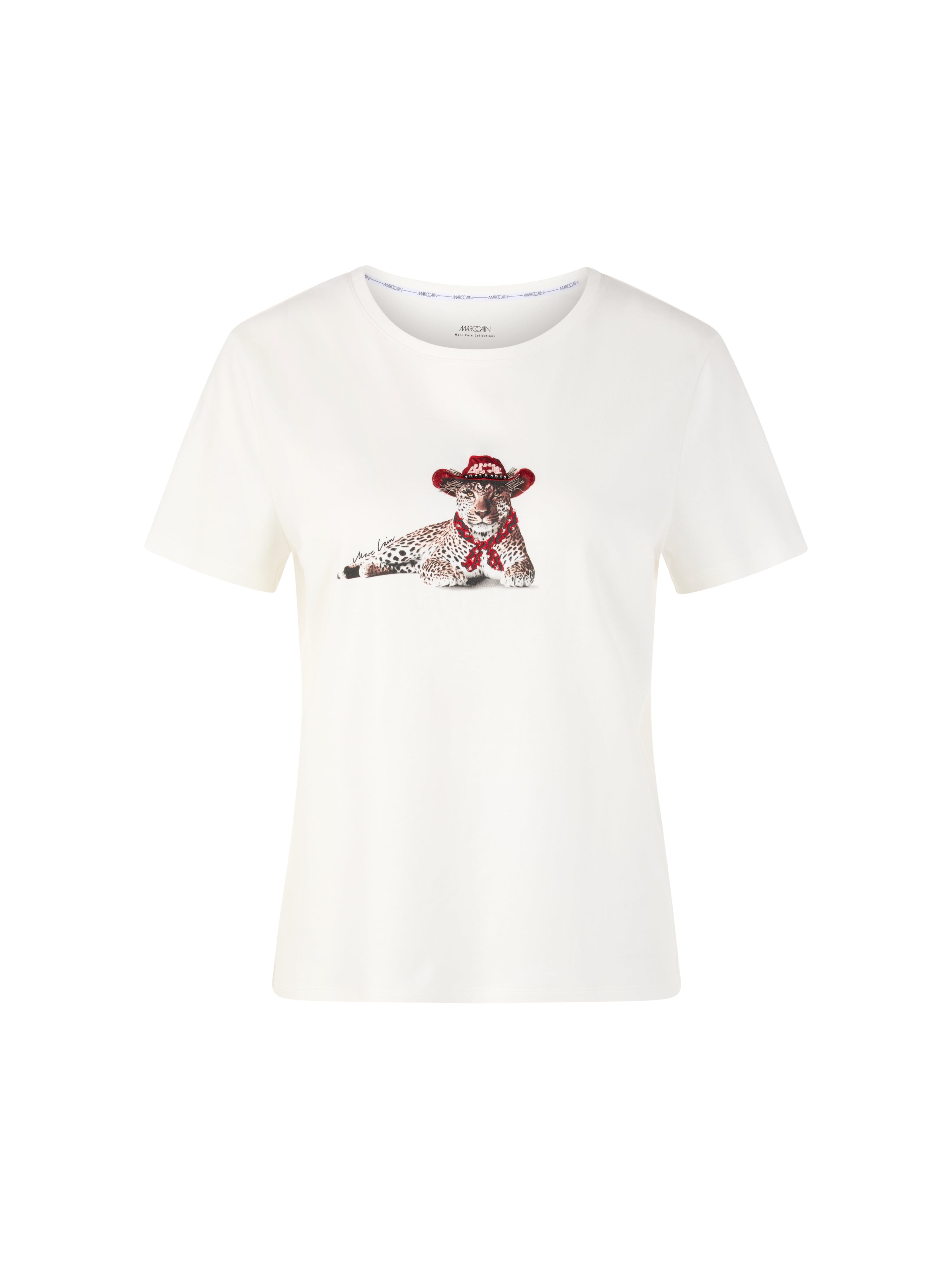 Cotton shirt with leopard motif|Casual-fit T-shirt made from pure cotton with a classic round neck and short sleeves. The highlight is the eye-catching leopard motif on the front: coolly reclining with a cowboy hat and neckerchief. Mini sequins and small fringes add extra charm to this eye-catching design.|Casual fit|Short sleeves|Round neck|Soft feel|The model is 179 cm tall and wearing size N3 / UK 12.