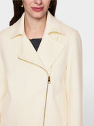 Elegant wool jacket in the biker style|Stylish outdoor jacket in a trendy biker look, made from 100% pure wool. The elegant, diagonal 2-way zip in gold adds a striking highlight, while side pockets offer practical comfort. Its high-quality finishing and fashionable design make this jacket the perfect companion.|Casual cut|100% wool|Two-way zip|Side pockets|The model is 179 cm tall and wearing size N3 / UK 12.