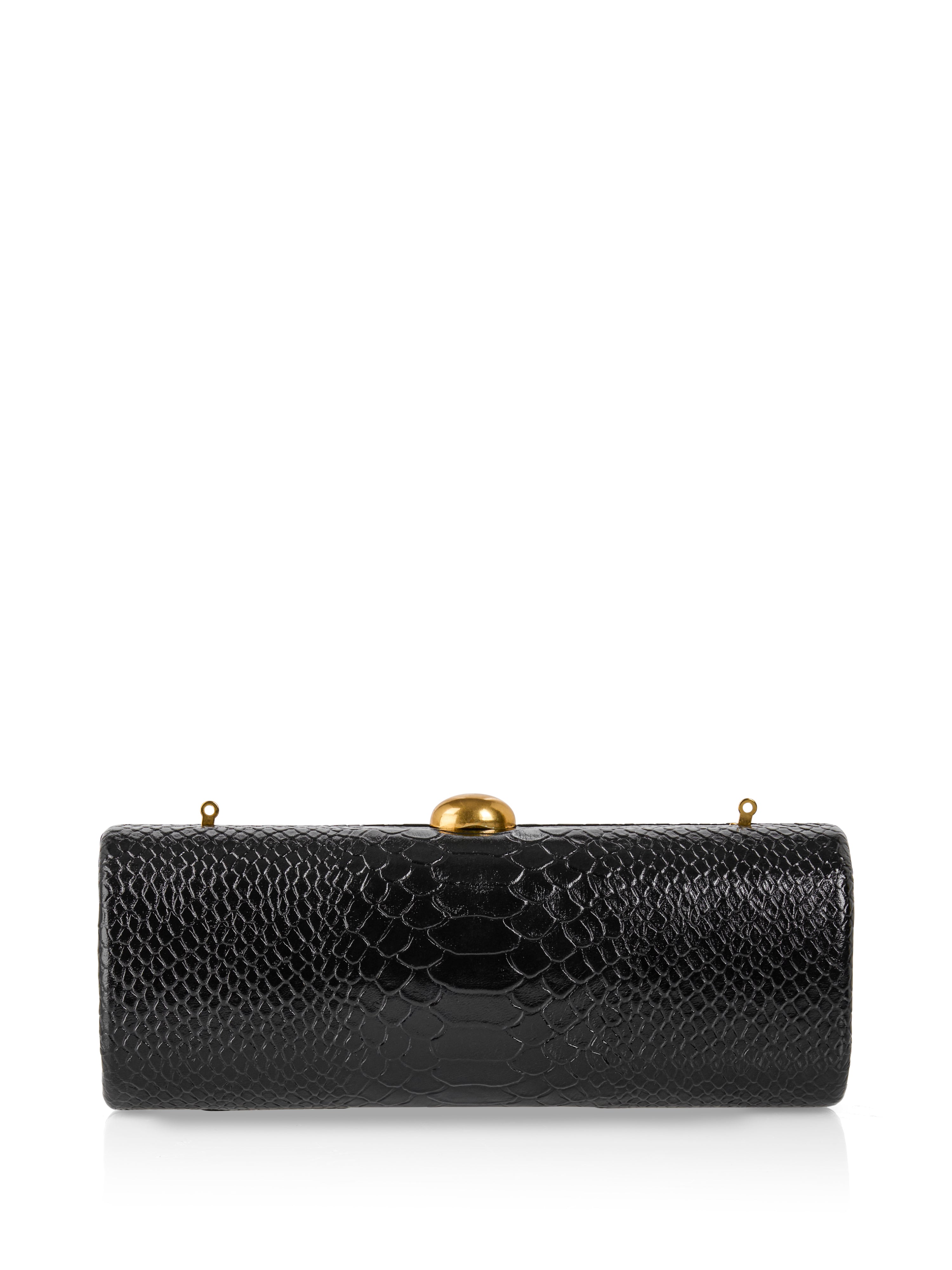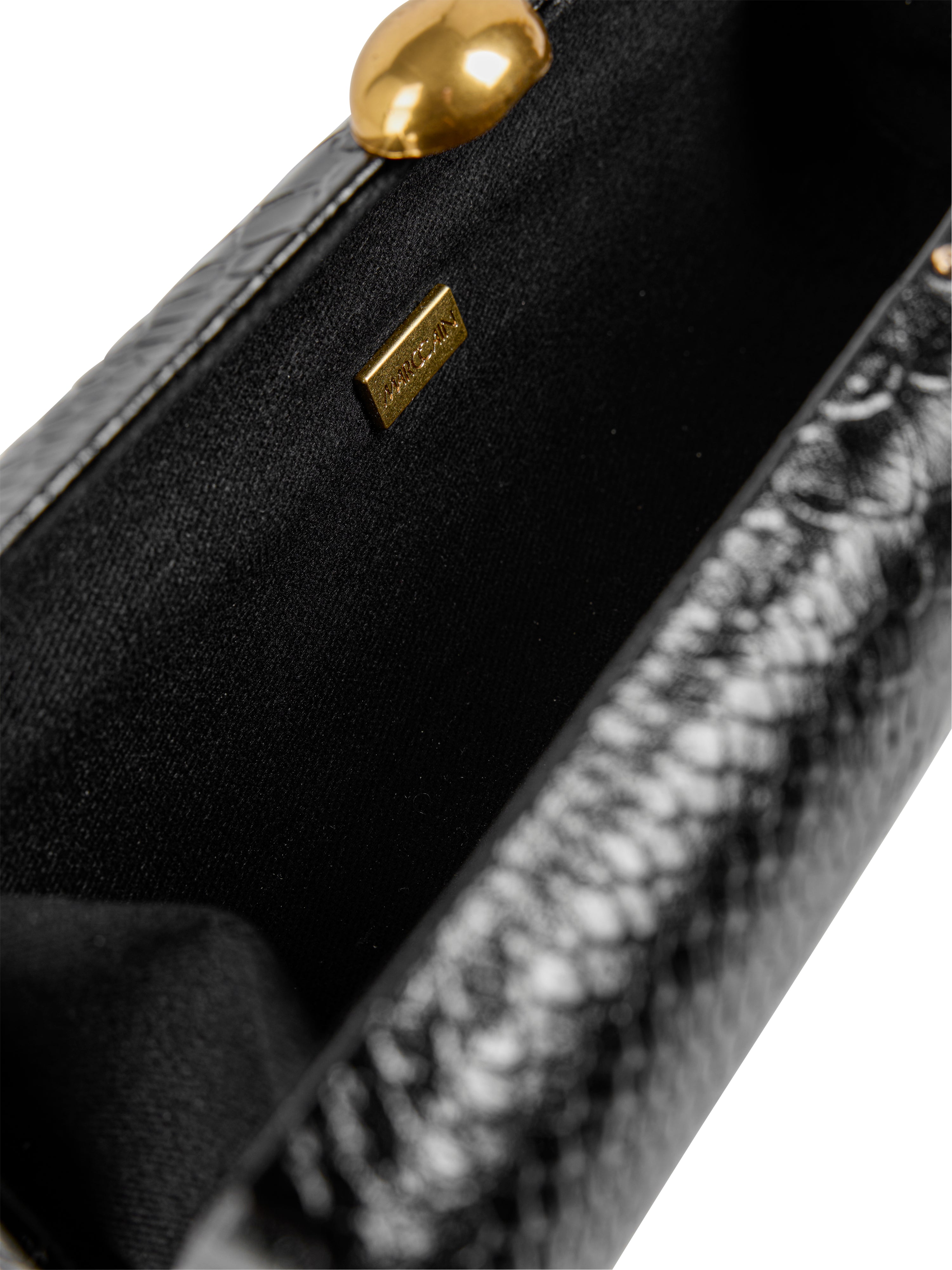 Leather clutch in snake look|Elegant hardcover clutch bag made of leather in a modern snake look with a removable metal chain strap for over the shoulder carrying. This stylish accessory impresses with its high-quality cotton blend lining and elegant shape. Perfect for evening events, parties or vibrant outfits.|Made of leather|Hardcover|Metal chain strap|Snake print|Dimensions: 23x6x9 cm