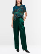 Loosely cut blouse shirt in a sophisticated material mix, with a front in pure silk and a back in soft viscose with elastane. The print mix of feather motifs and multicoloured herringbone adds creative sophistication to the look. With short sleeves and a decorative button at the neckline.
