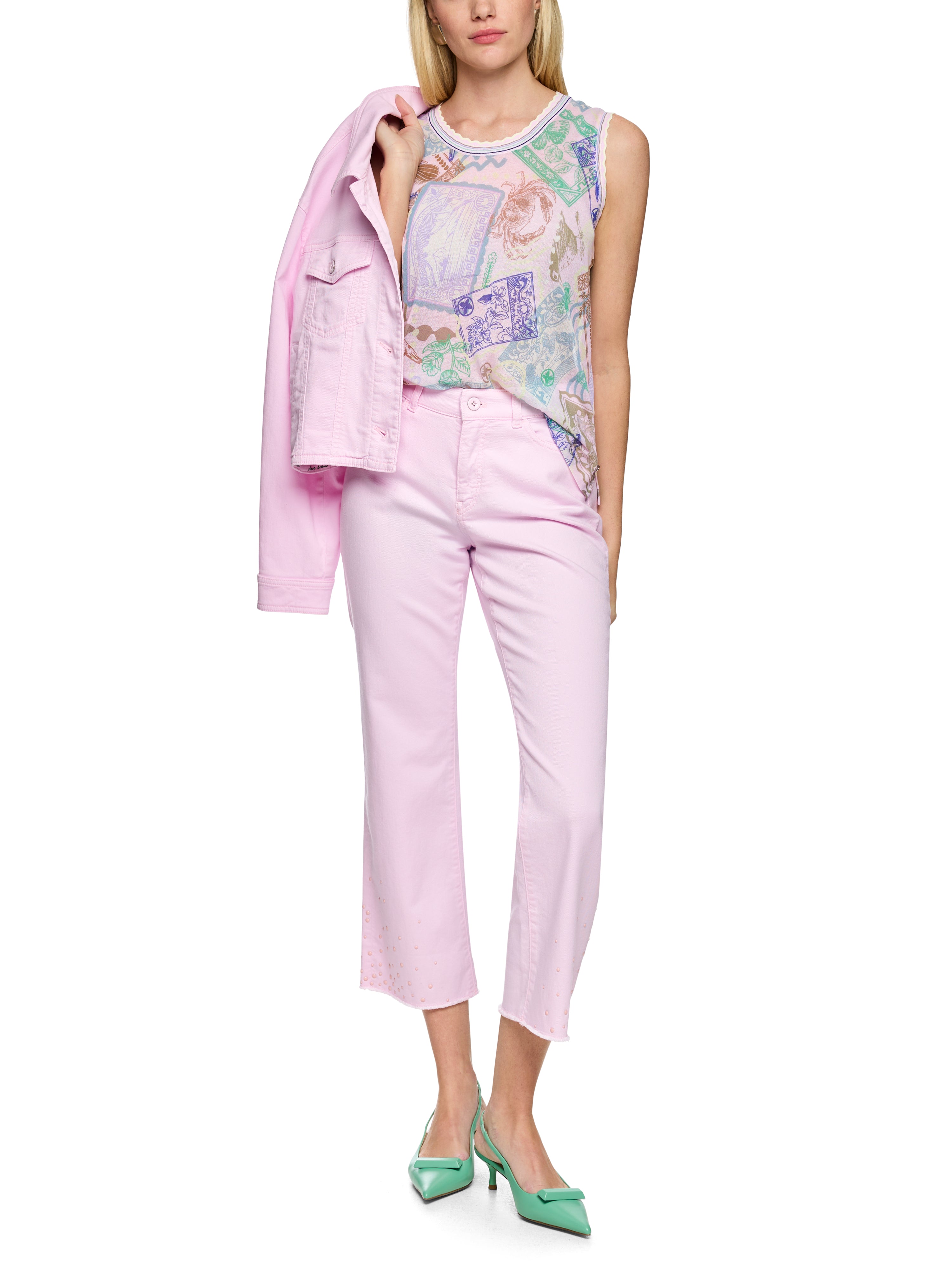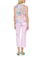 Marc Cain Pink Tulle Sleeveless Knitted Top With Stamp Print