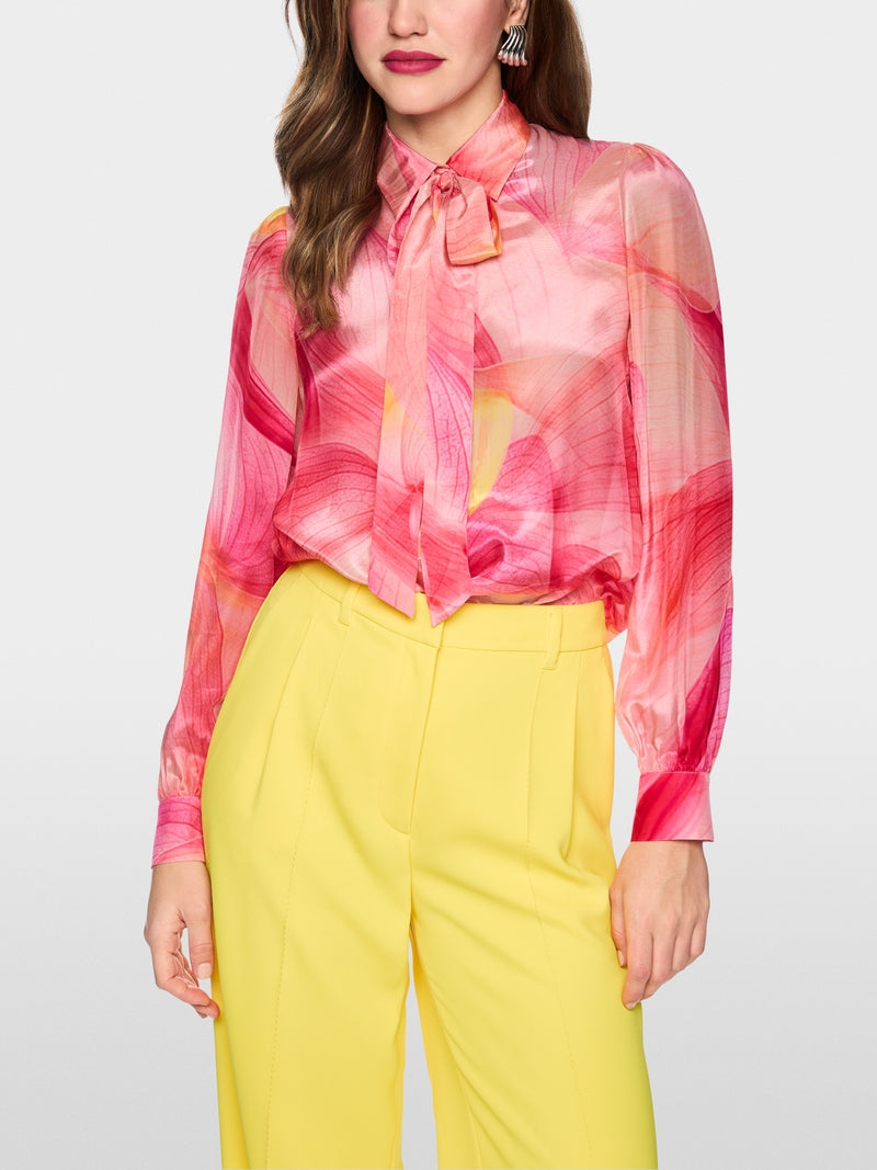 This fine blouse made of flowing viscose impresses with an elegant calla lily print. The tie-neck detail, concealed buttoning and two-button cuffs with small gathers add feminine sophistication. Loosely cut, it offers high wearing comfort and a light drape.