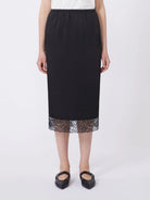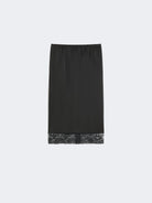 Calf-length skirt featuring lace passementerie detail at the hem.