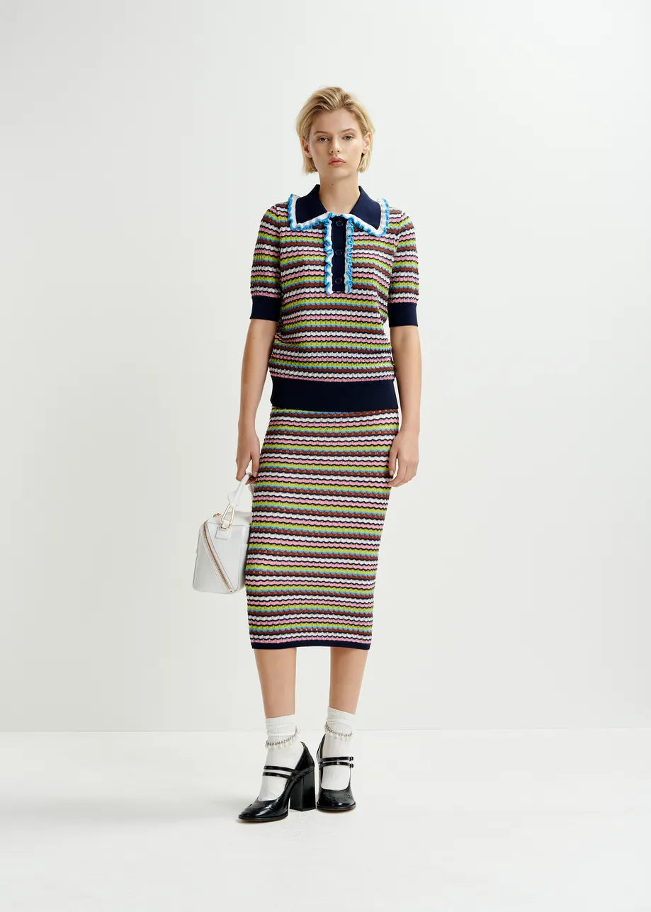 Essentiel Antwerp Himpact Multicolor striped midi skirt