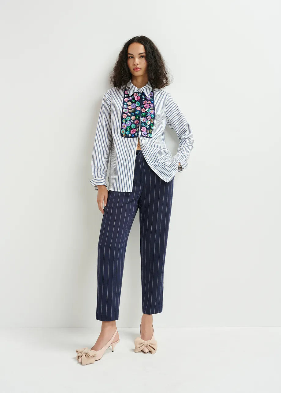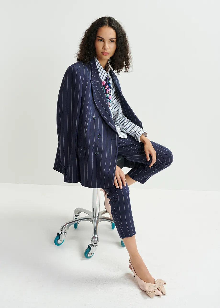 Essentiel Antwerp Host Dark blue and white pinstripe trousers