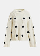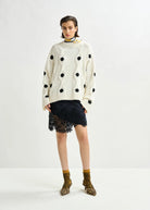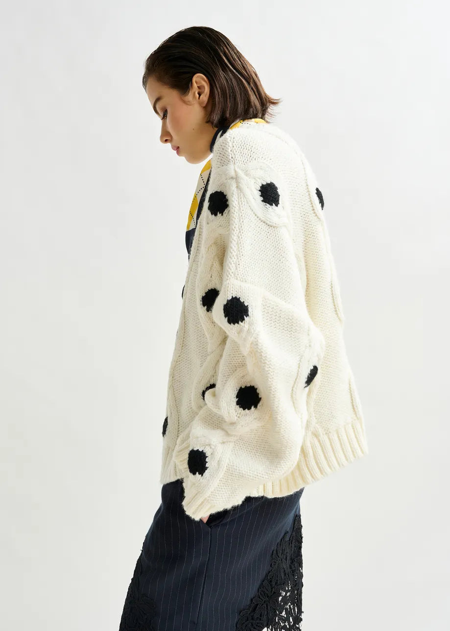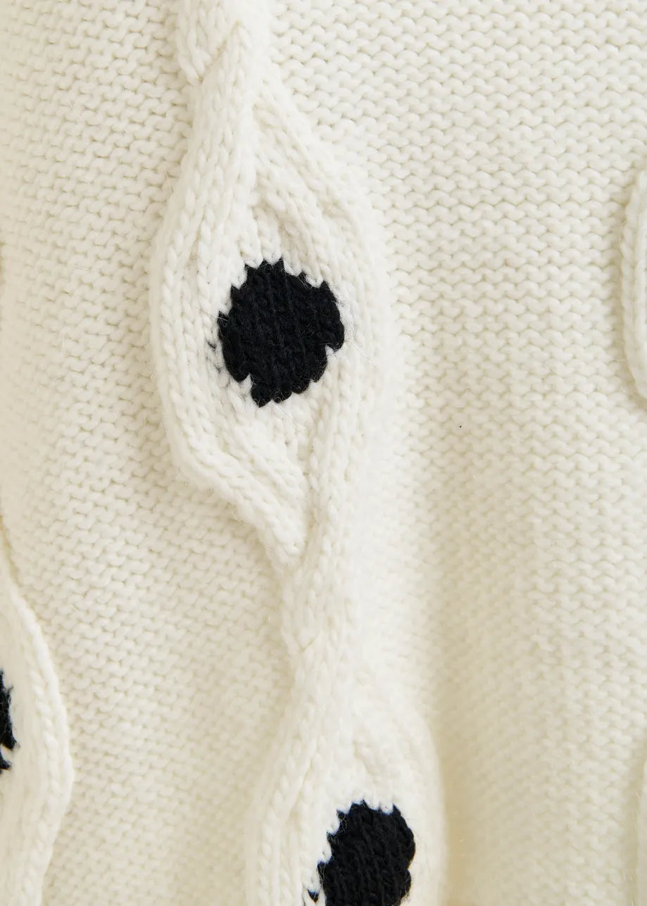 Essentiel Antwerp IXEL White and black polka-dot cable-knit sweater