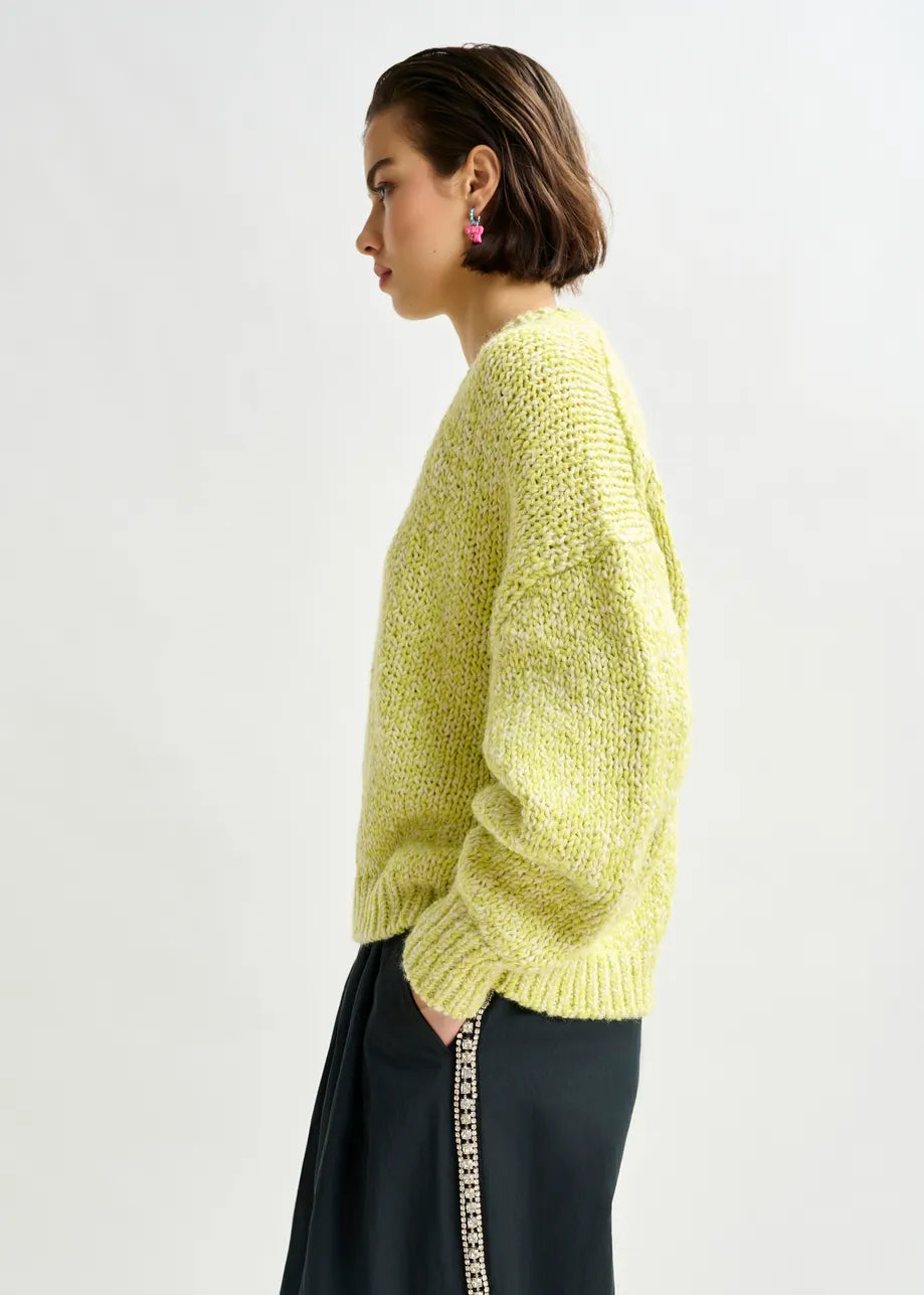 Essentiel Antwerp IZURA Green and light green melange wool-blend sweater