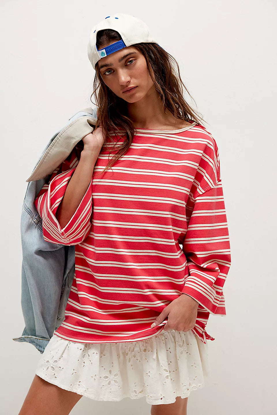 Chic is an understatement with this oversized tee from We The Free, featuring extra-wide ¾ length sleeves and a classic boat neckline for that effortlessly elevated look.