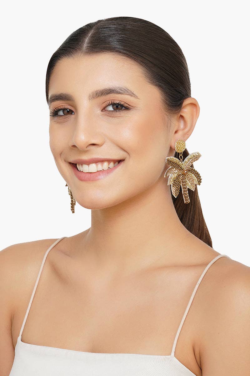 * Lovely Palm Tree-Shaped Earrings With Intricate Bead Detailing