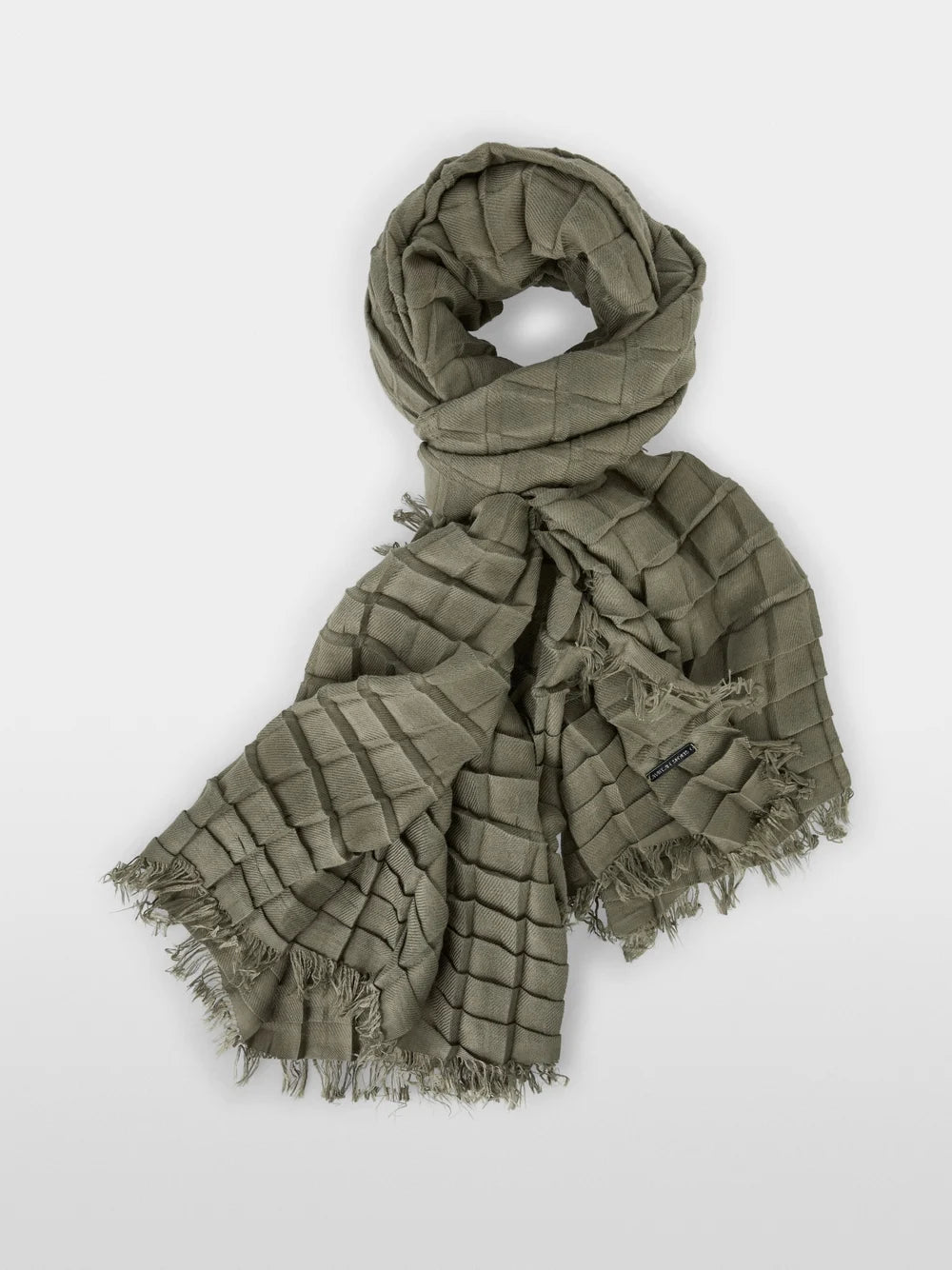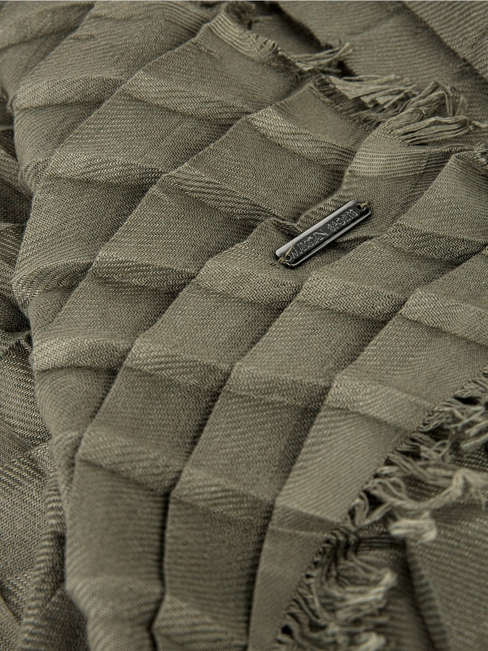Marc Cain Deep Olive Green Voluminous scarf with pleated check