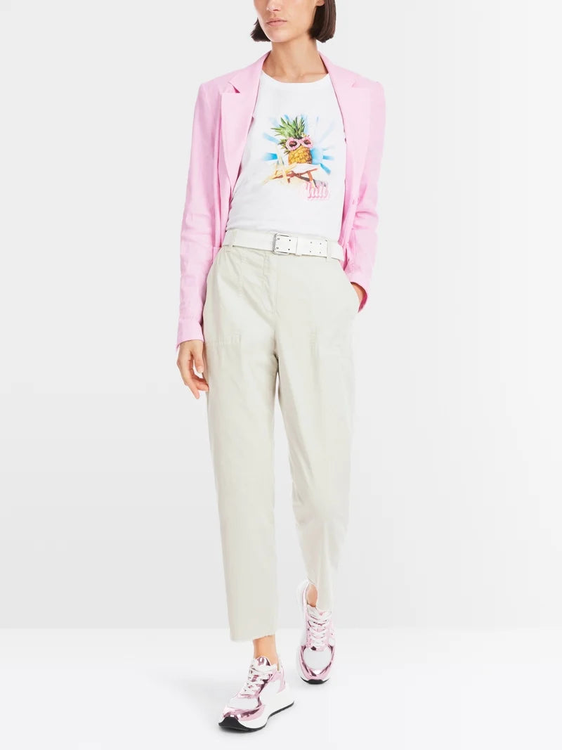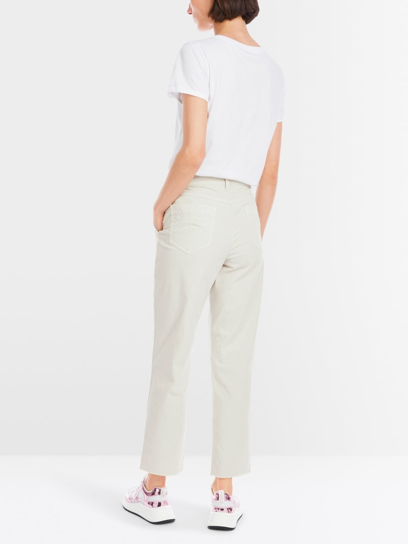 The FRANCA trousers are a relaxed summer basic. They are made from lightweight cotton with stretch and come from the Rethink Together sustainability label. The FRANCA have a feminine fit with an ankle-length leg and fringed hem. The front pockets have square stitching and the back pockets have a dart. These trousers fasten with a zip fly fastener.