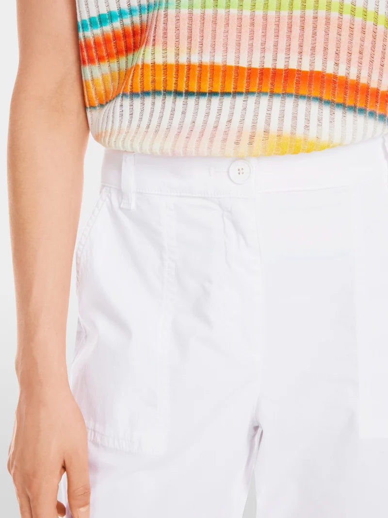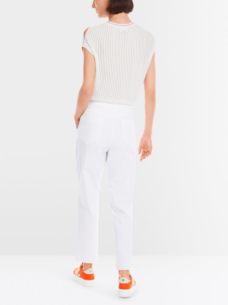 The FRANCA trousers are a relaxed summer basic. They are made from lightweight cotton with stretch and come from the Rethink Together sustainability label. The FRANCA have a feminine fit with an ankle-length leg and fringed hem. The front pockets have square stitching and the back pockets have a dart. These trousers fasten with a zip fly fastener.