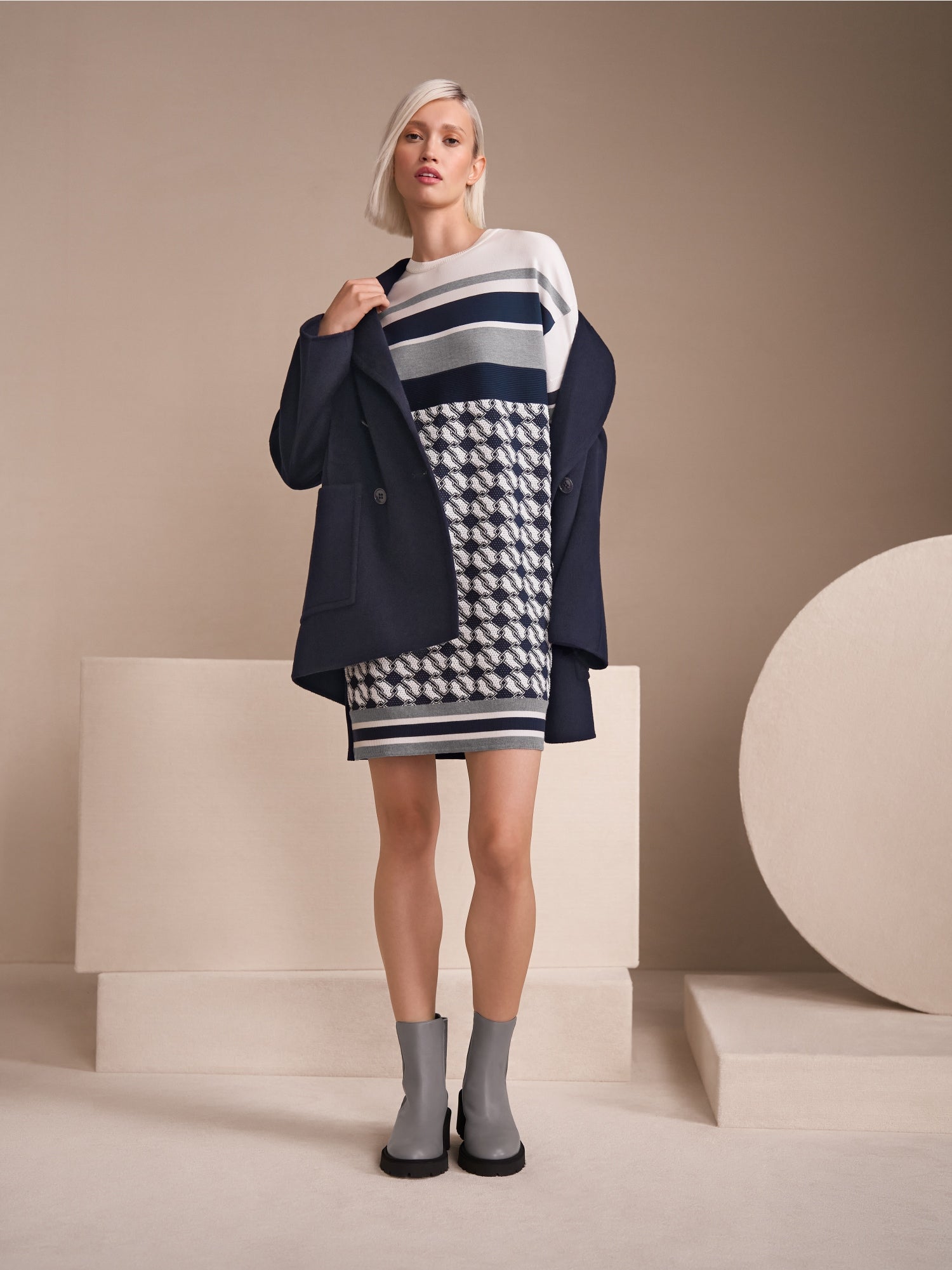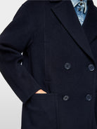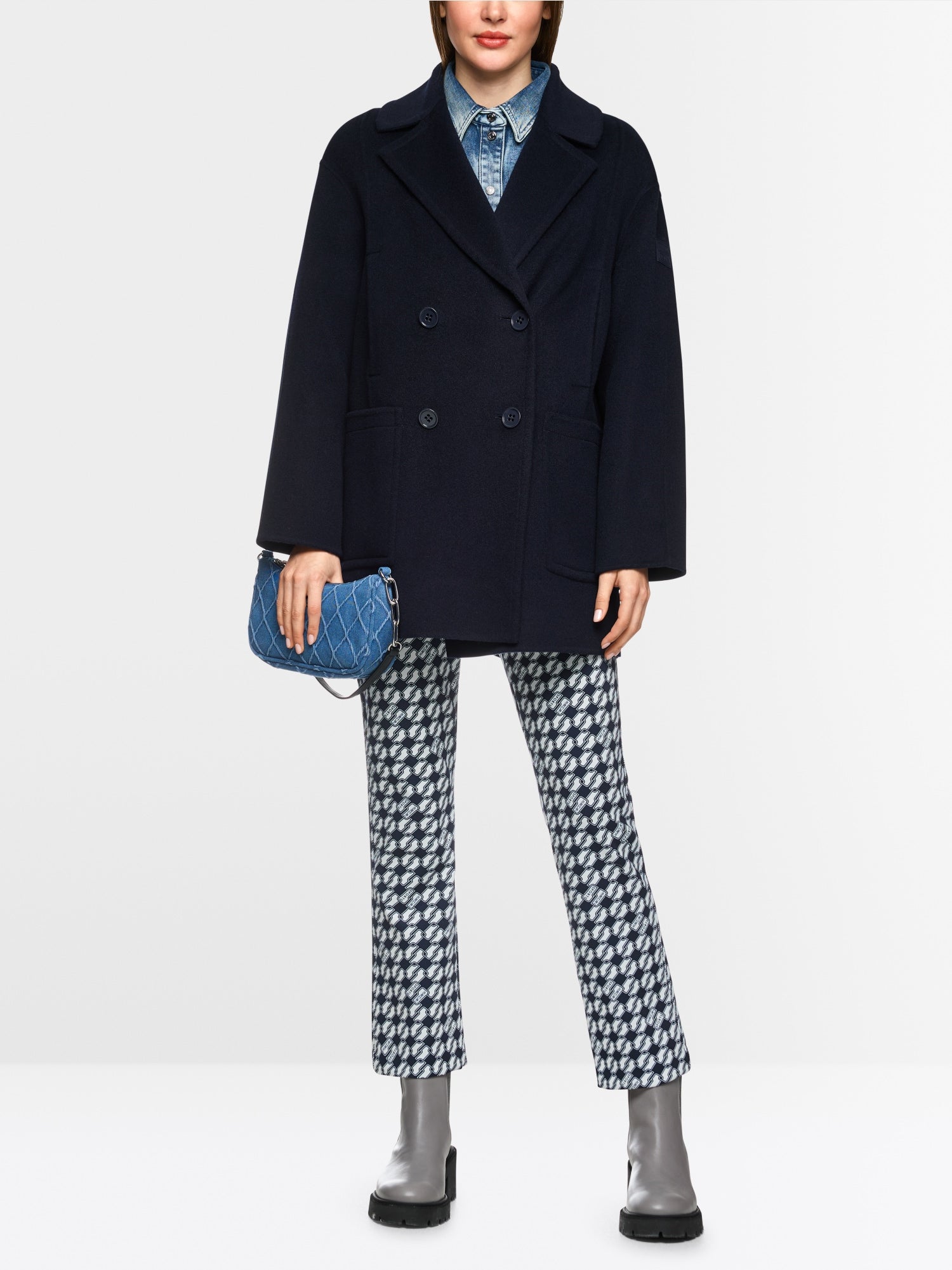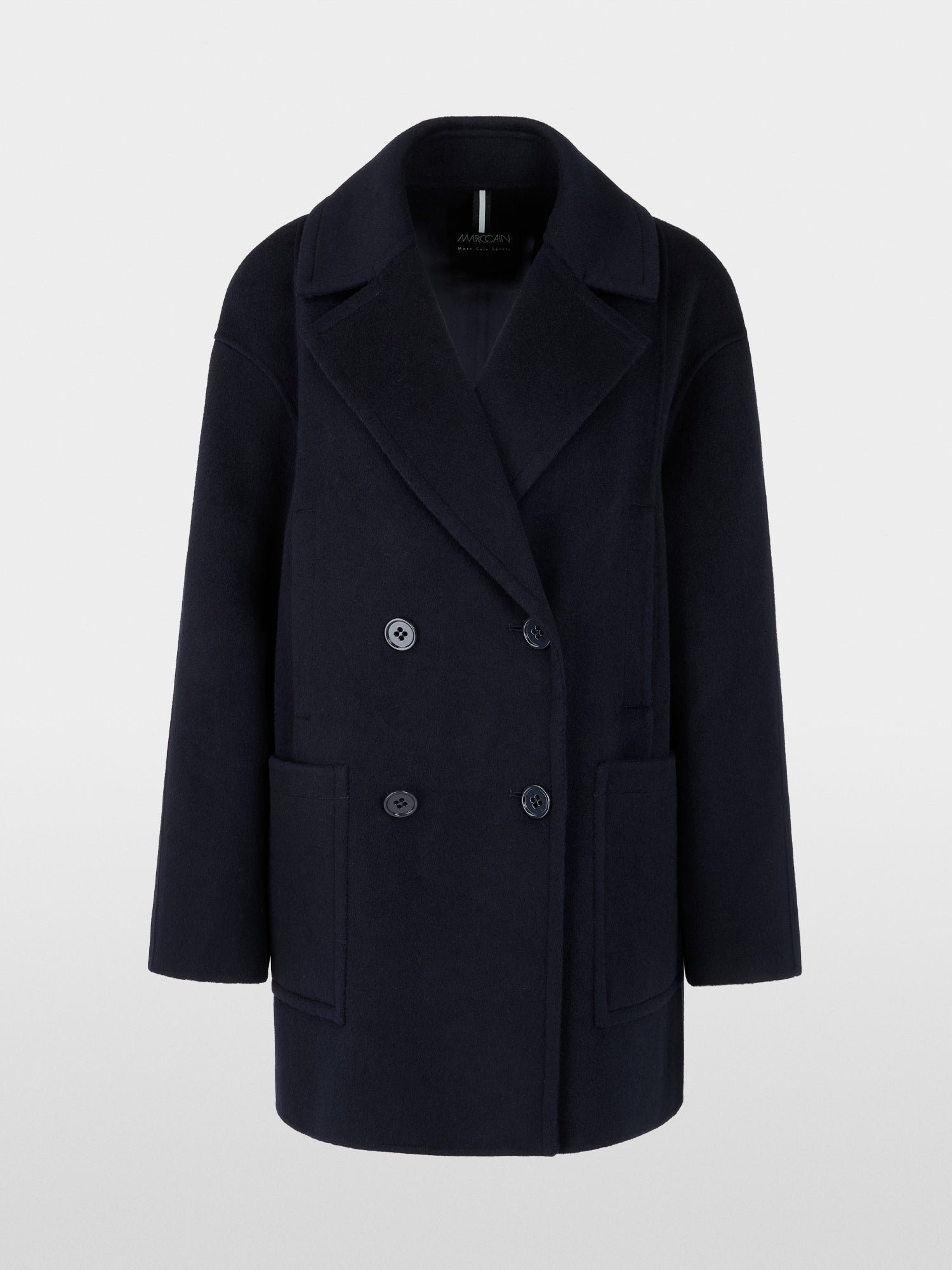 A high-quality wool coat with a casual cut which impresses with its soft feel. This double-breasted coat features two large patch pockets on its front as well as two side pockets.