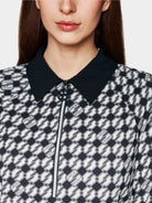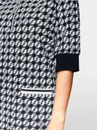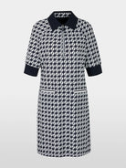 This dress is made from super-soft scuba jersey for maximum comfort. The new cube-design print and plain-coloured trims are style-defining features. A zip and patch pockets complete the look. This short dress has no inner lining.