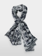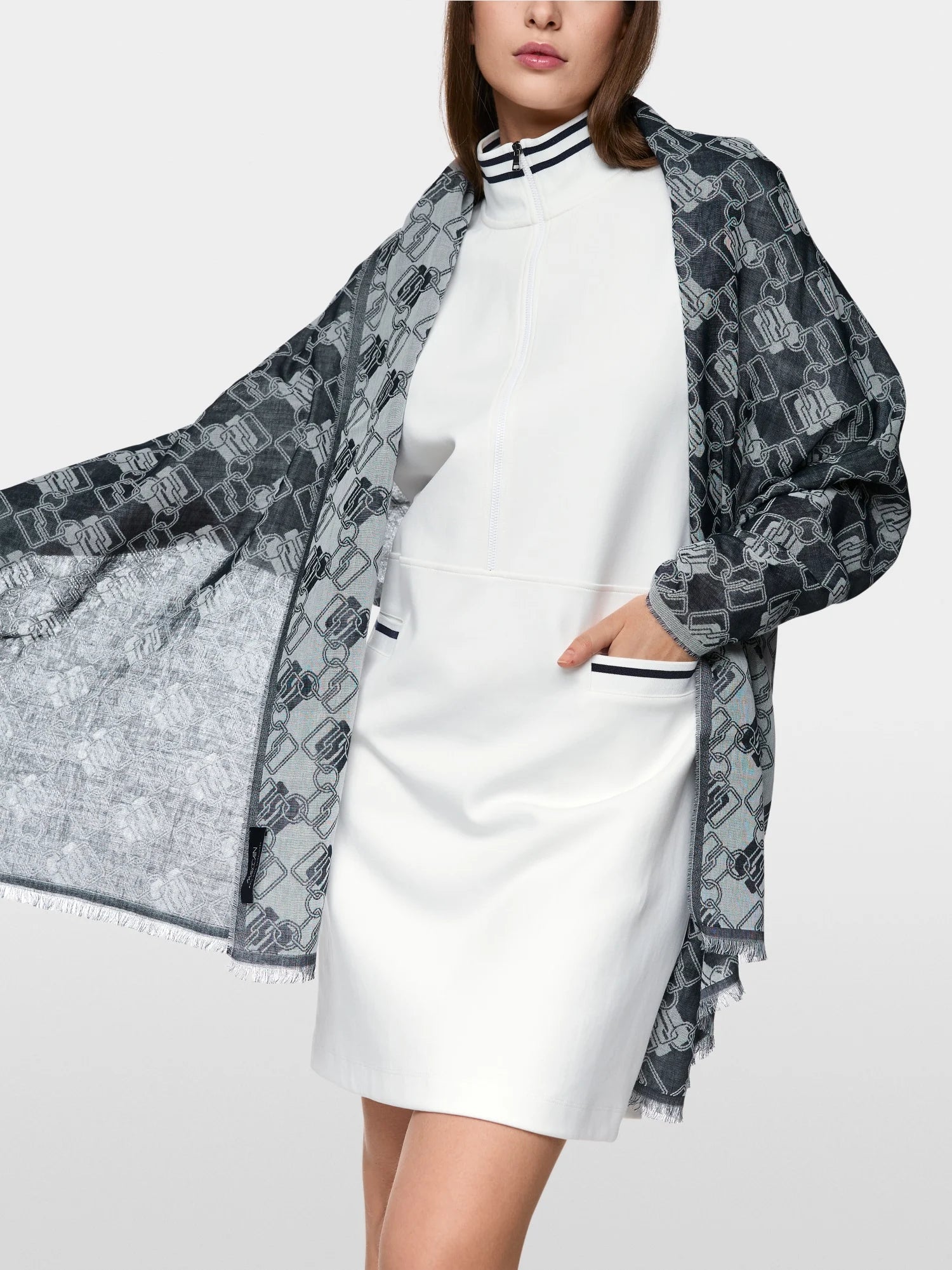 This long scarf is made from a comfortable cotton and new wool blend. The highlight is the new cube design. All the sides are decorated with short fringes.
