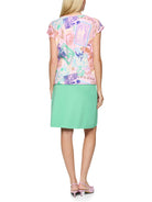 Stretch cotton shirt with stamp print|Casual-fit shirt made from comfortable stretch cotton with a round neck and short, fitted sleeves. Mini ruffles at the hems add subtle accents, while the all-over stamp print gives the design a modern, trendy touch.|Made from stretch cotton|Casual fit|Round neckline|Short sleeves|The model is 179 cm tall and wearing size N3 / UK 12.