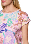 Marc Cain Pink Tulle Stretch Cotton T Shirt With Stamp Print