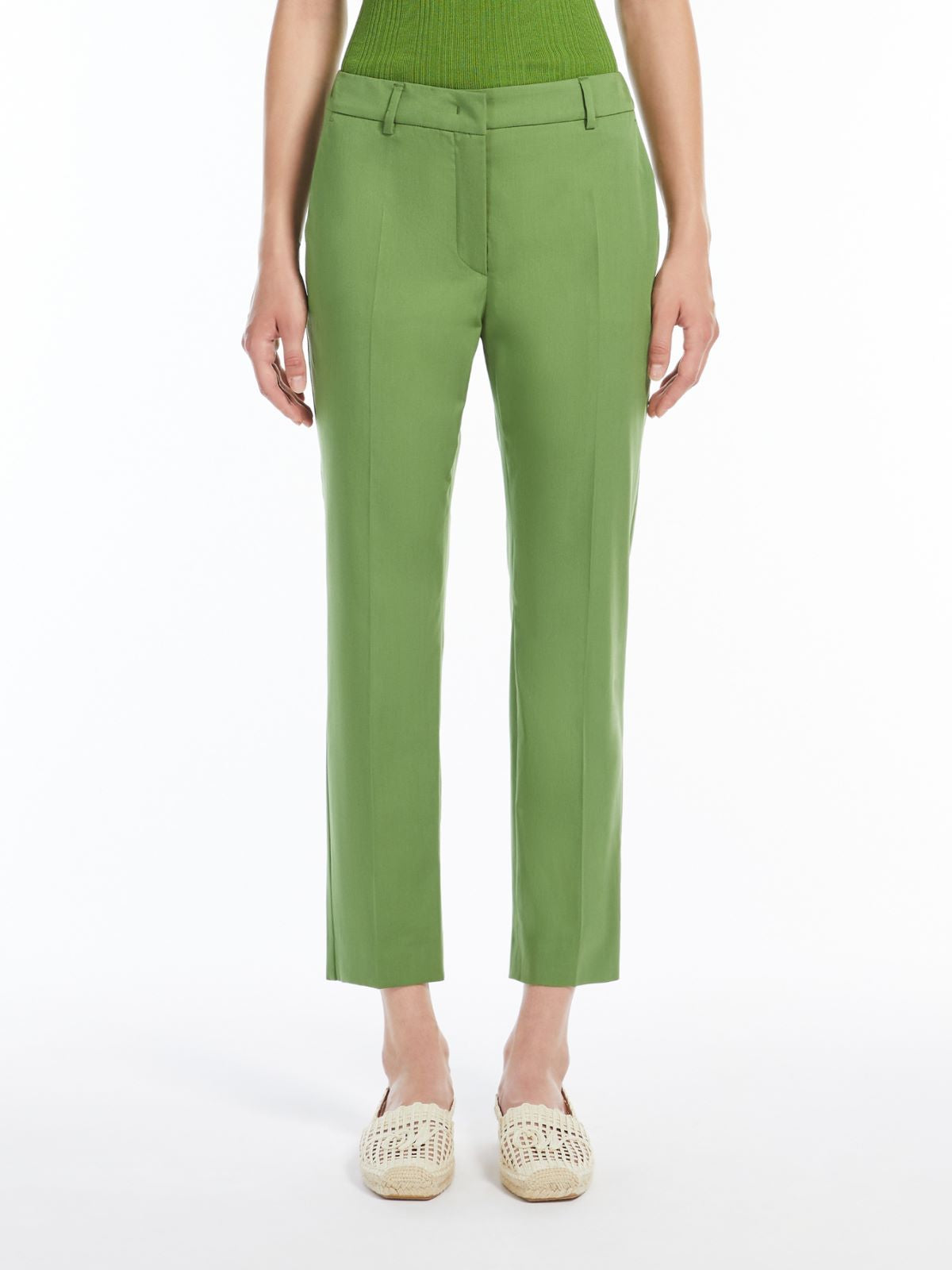 Cigarette trousers in stretch cotton gabardine, featuring a slim-fit silhouette cropped at the ankle. The style has a trouser crease, belt loops, slant pockets at the sides and back welt pockets. Fastening with high waistband tab, zip fly and small hook.