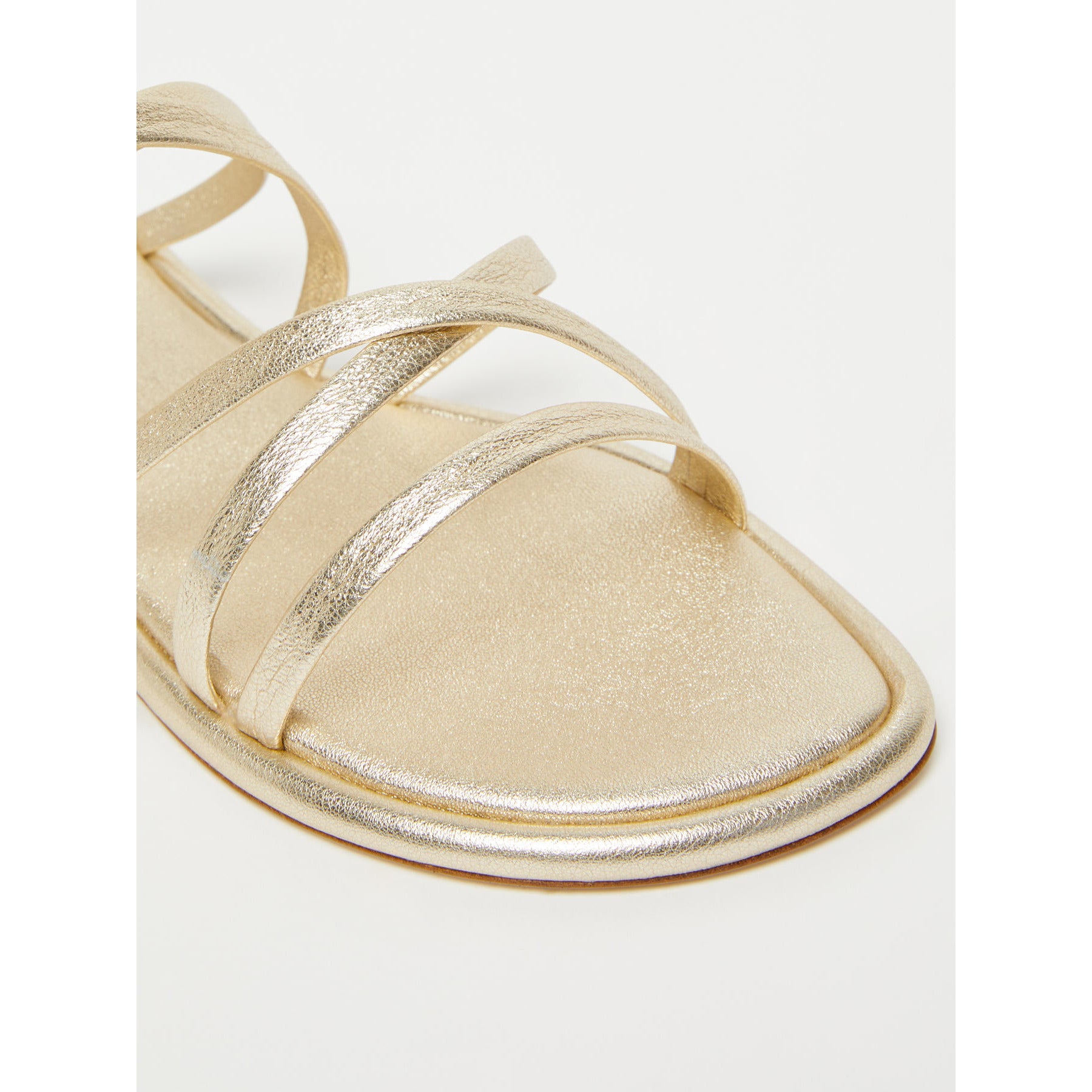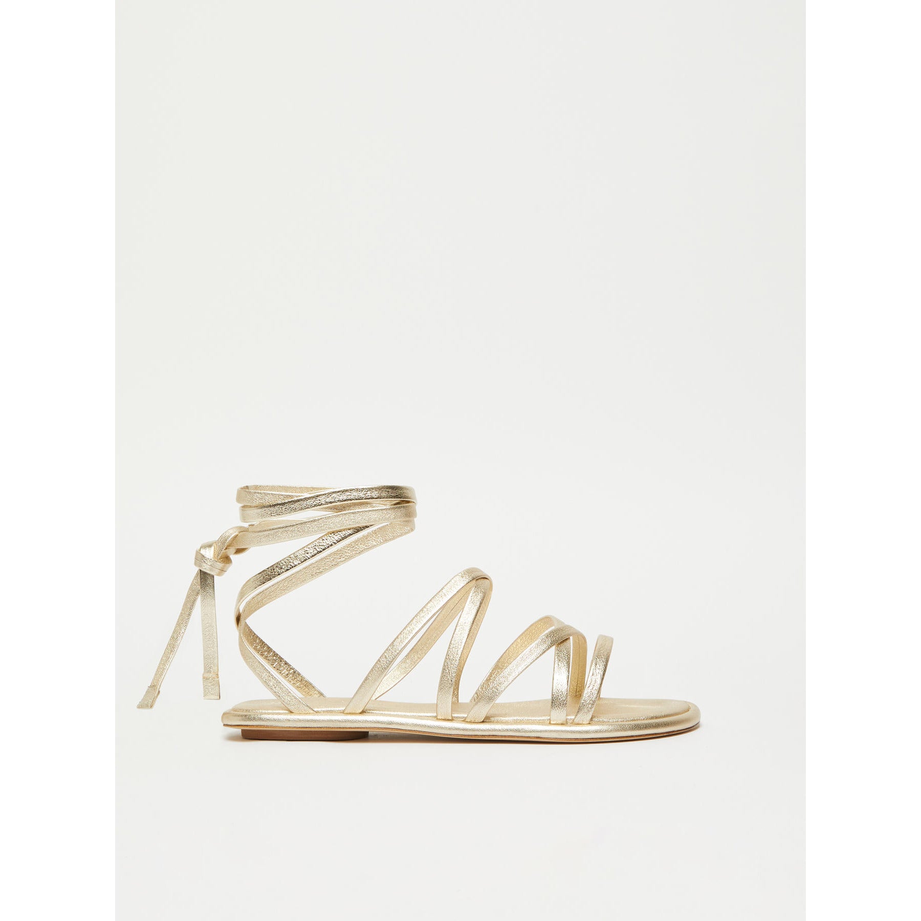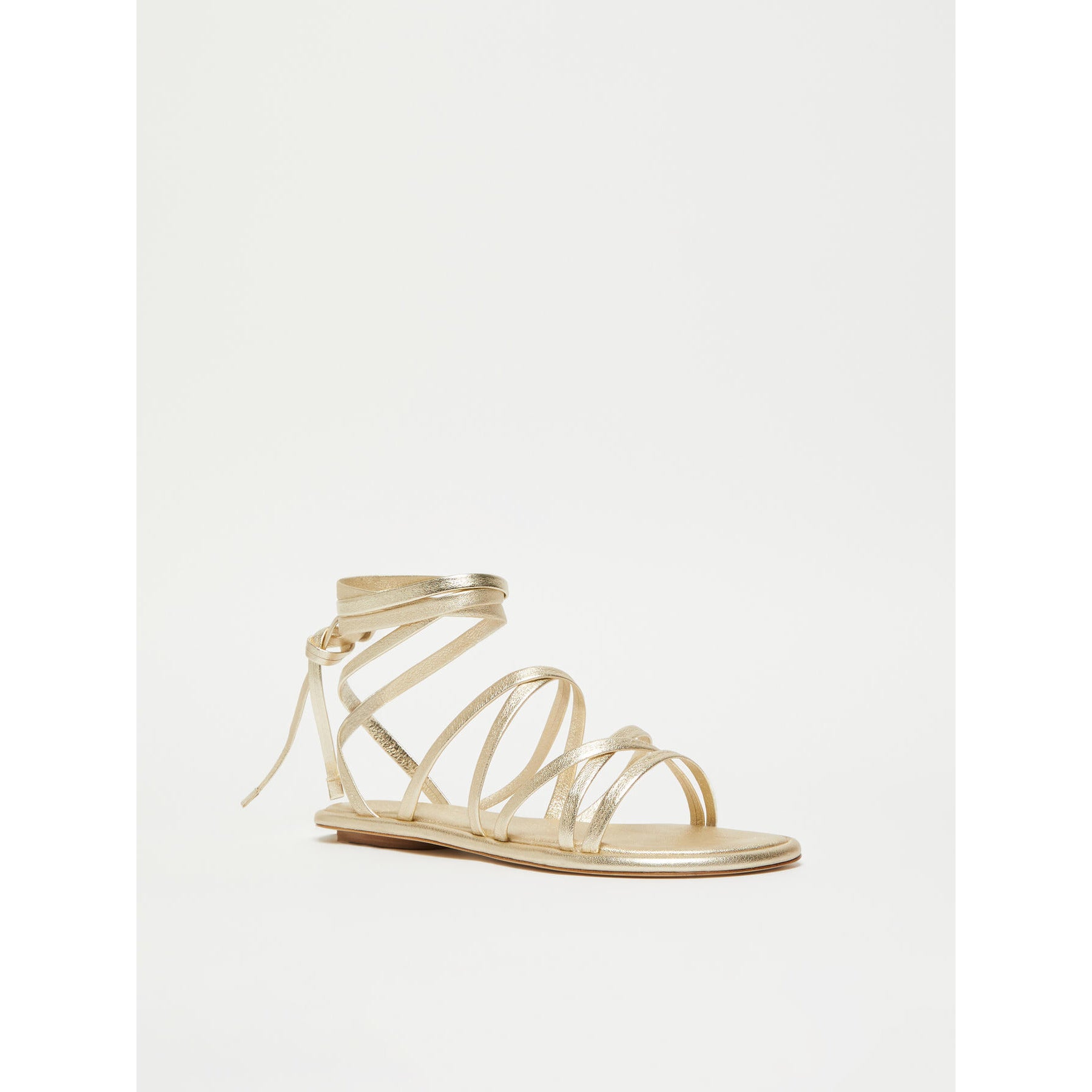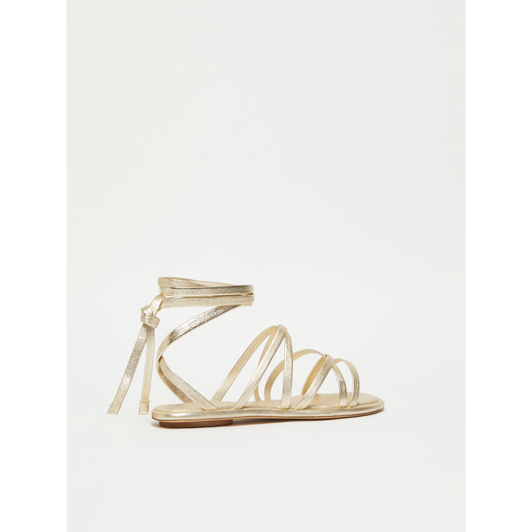 Flat gladiator sandals in soft metallic nappa leather with crossover straps and ankle ties. Leather lining and leather sole for superior comfort. The accessory is part of the new “A Weekend with Ashley Park” capsule. Inspired by a Mediterranean summer and Parisian elegance, the collection offers versatile and timeless pieces designed to complement your style and wear with ease at any time of the day. A celebration of modern glamour.