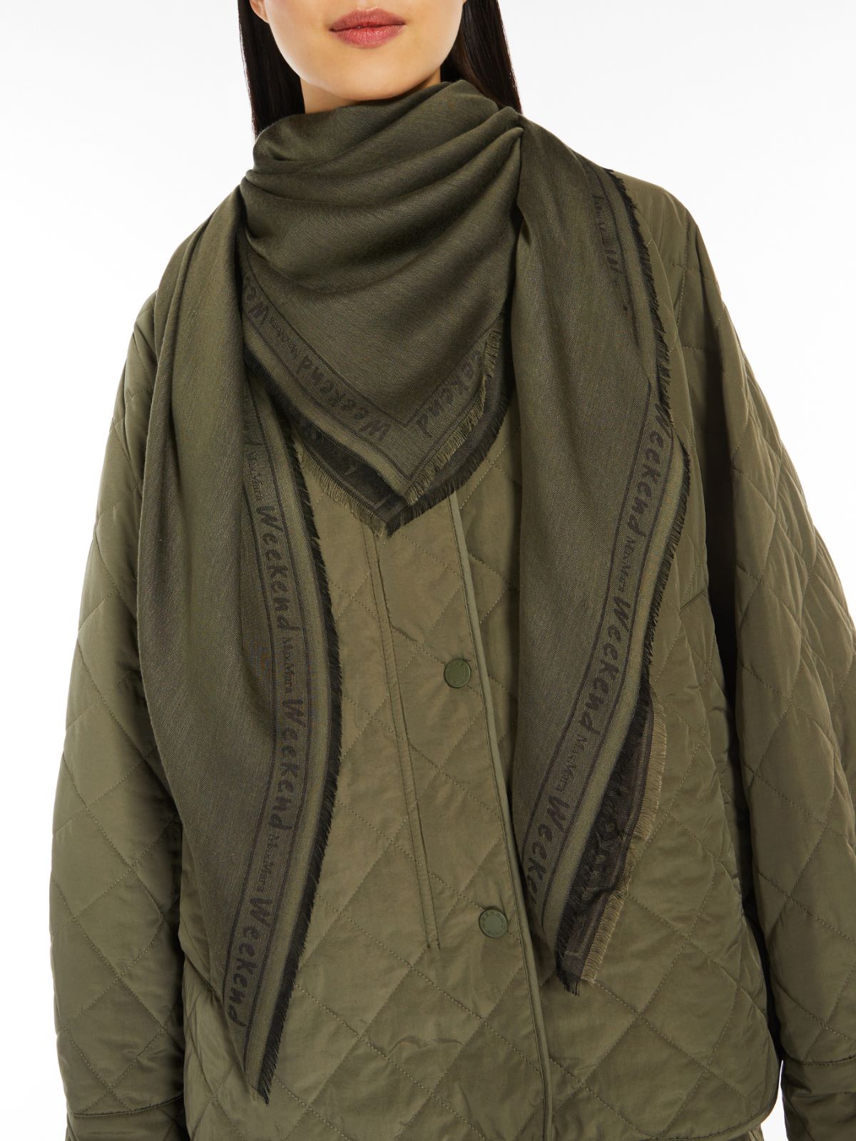 Maxi pocket square in soft pure modal yarn. Embellished with fringed trims and Weekend Max Mara lettering detail along all the matching-coloured trims. Size: 120 x 120 cm.