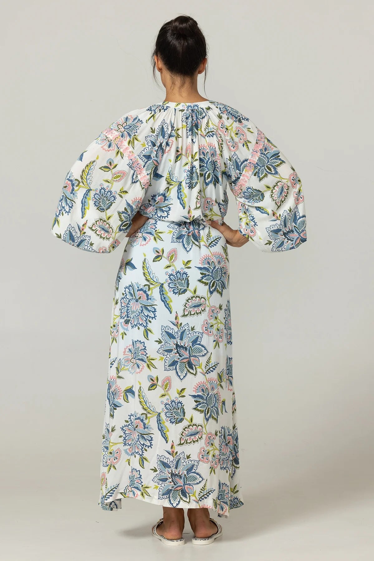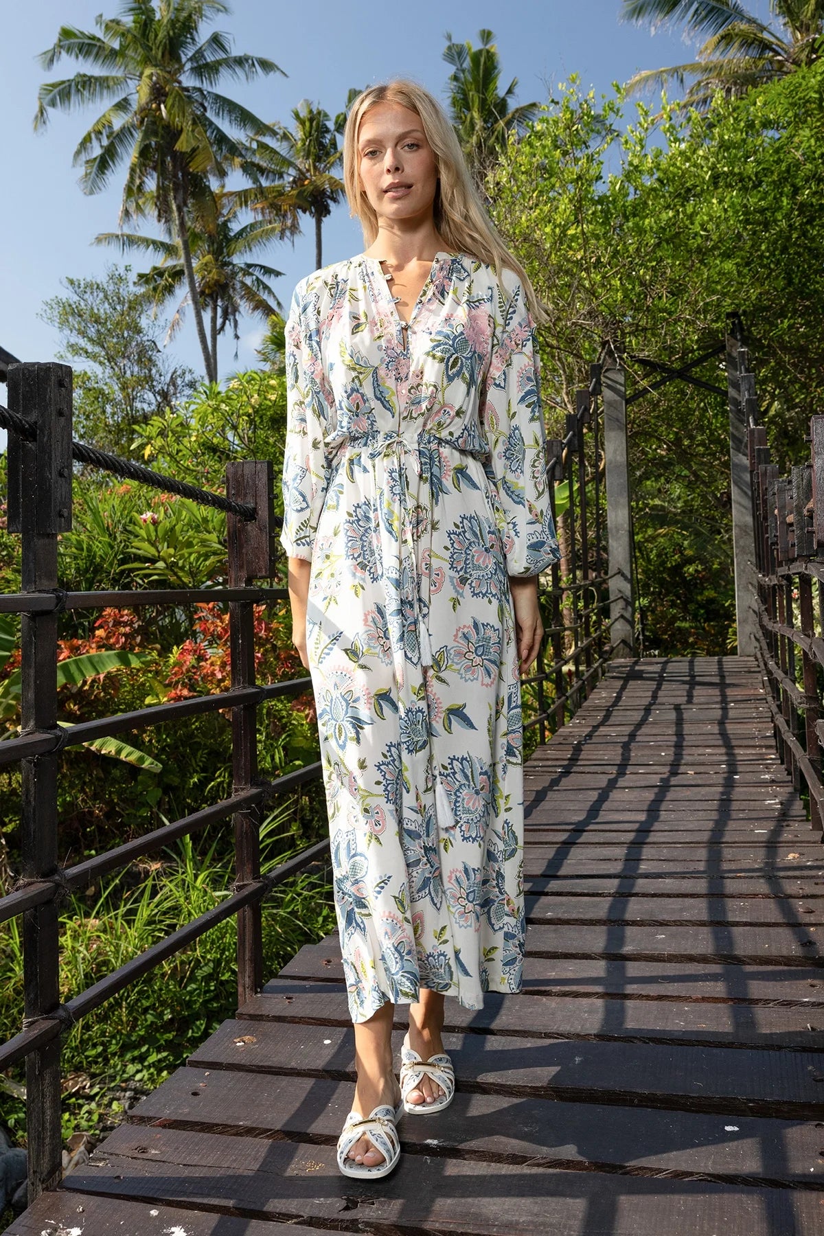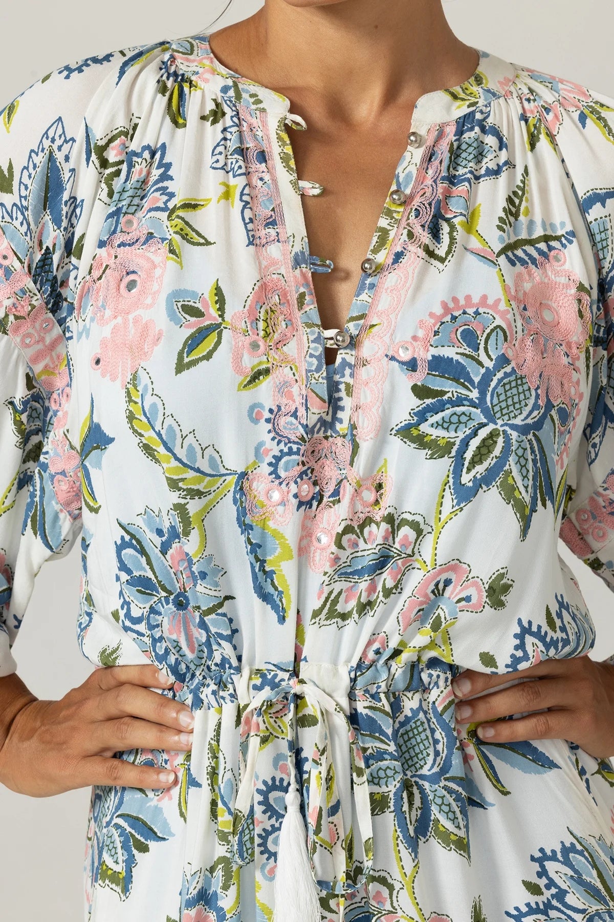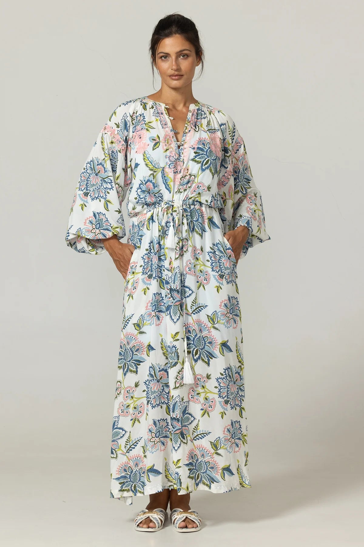 Raphy Long Dress: Boho Chic Elegance, Pastel Tones & Exquisite Details This unique size corresponds to a size 38/42.