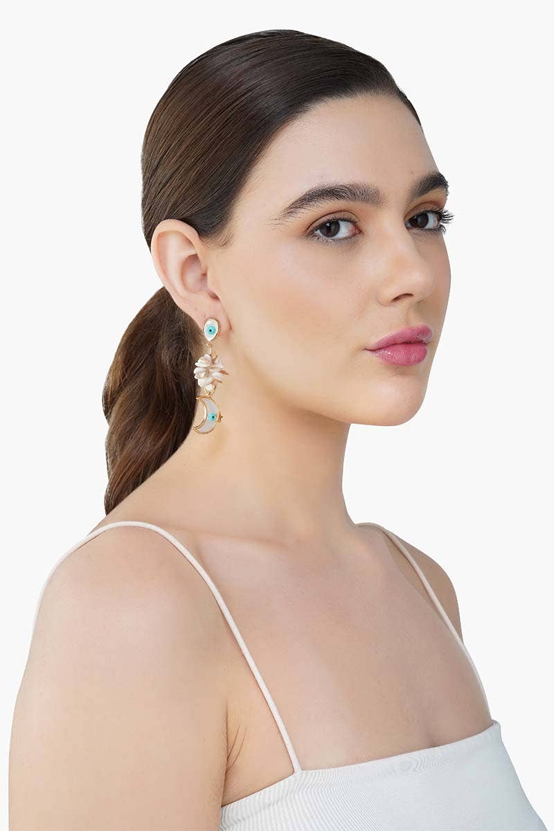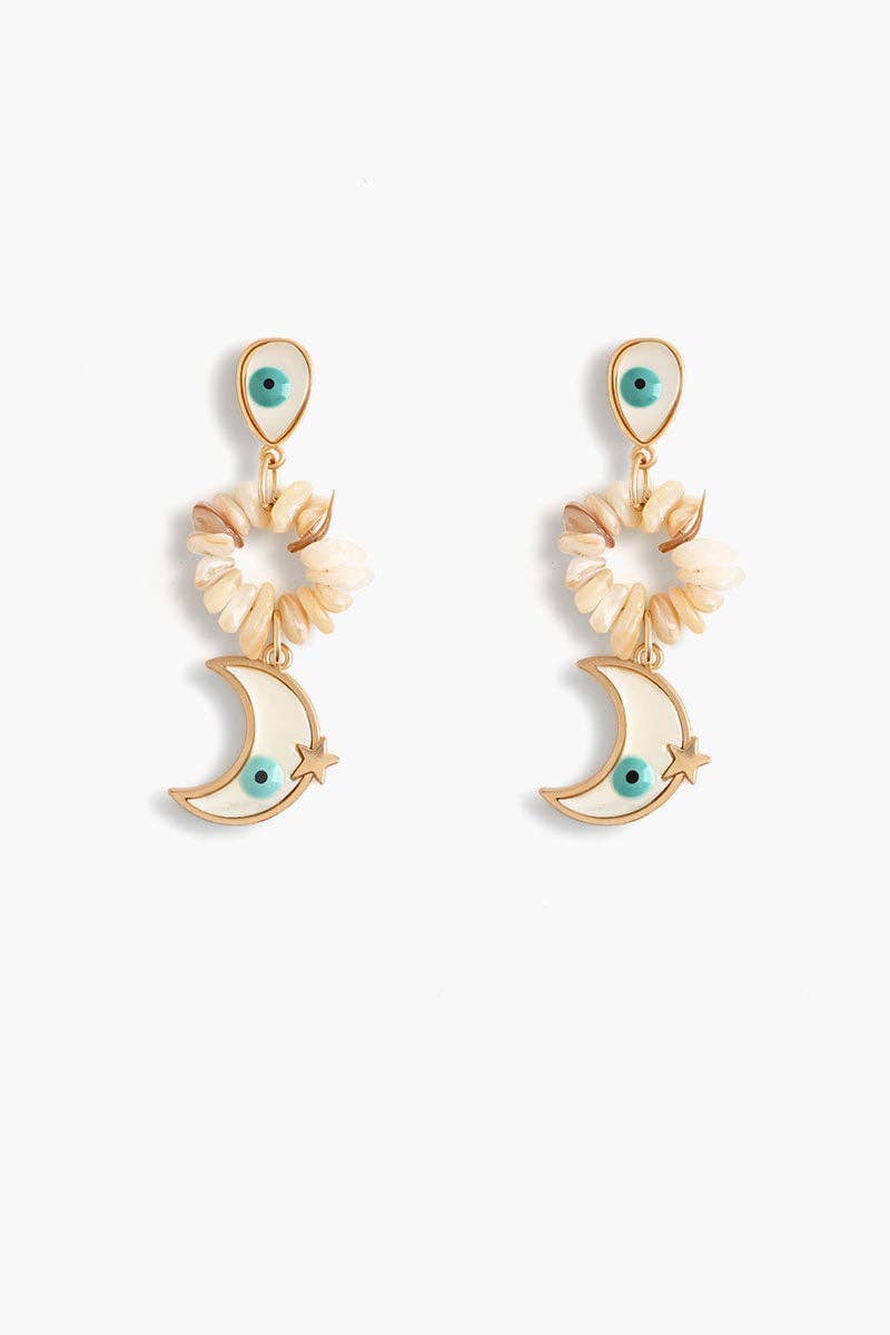 Handmade with care, these beaded earrings feature a captivating moon and mystic eye design, accented with natural agate stones. The natural color palette adds a touch of earthy elegance, while the secure back pin ensures a comfy fit all day long.