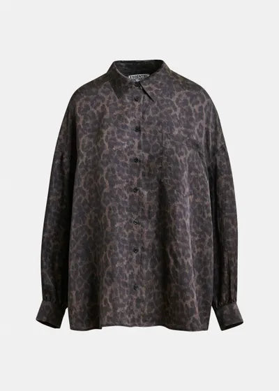 Essentiel Antwerp Leopard Ruffle Trimmed Oversized Shirt