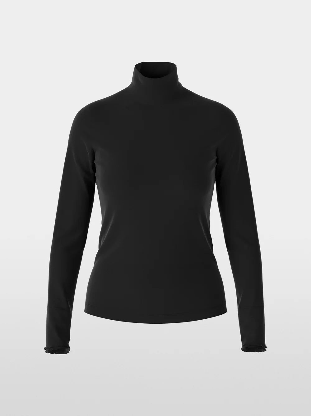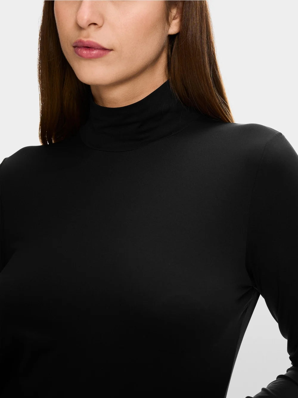 Long-sleeved shirt in lightweight, soft and stretchy hosiery. The style has a slim fit and is slightly tapered. The turtle neck is trendy. The minimalist design makes this long sleeve top a versatile piece.